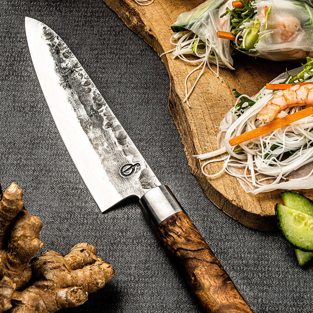 - Materiál: japonská ocel VG10, kořenové dřevo