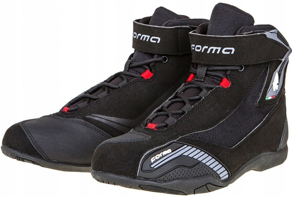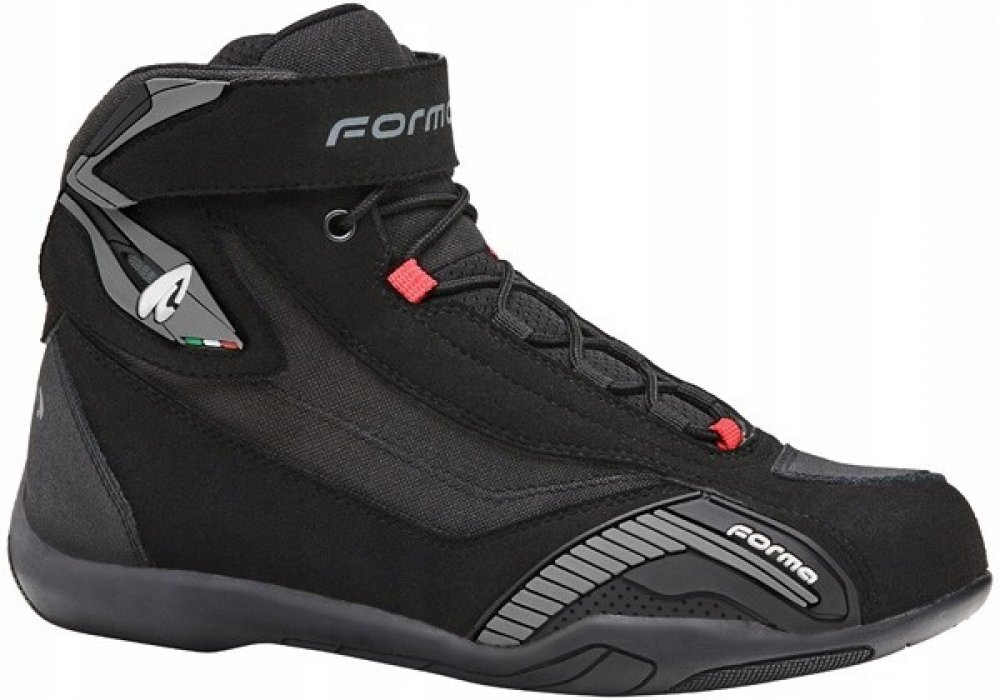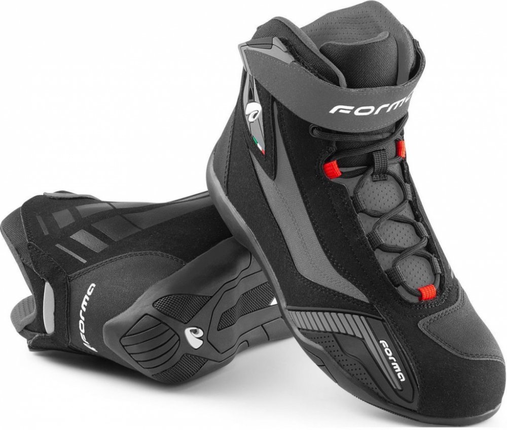 Moto boty FORMA GENESIS černé mají výšku tak akorát pro ochranu vašeho kotníku. Kombinace tří materiálů - mikrovlákno, vysoce odolný textil a kůže. Podrážka pryž. Ochranné prvky, které zvyšují vaši bezpečnost během jízdy, samozřejmě nechybějí ani v těchto botách. Patří mezi ně tvarovaná plastová ochrana kotníku (TPU), výztuha pro řazení a podrážky s technologií PP Mid Dual Flex s mezipodrážkou EVA...