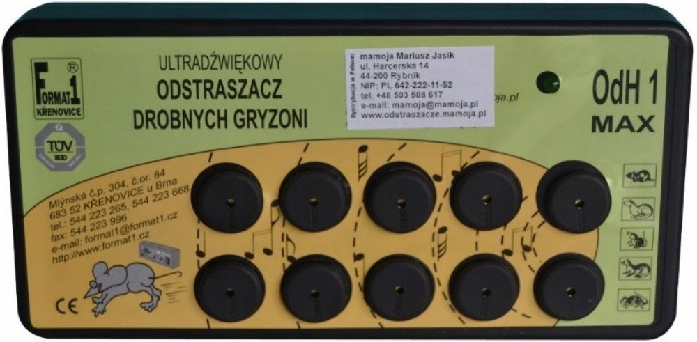 Zvukově-ultrazvukový elektronický odháněč myší, kun, krys, lasiček a potkanů. Jedná se o ryze český produkt s dlouholetou tradicí na trhu (od r. 1991) vyráběný přímo u nás ve firmě FORMAT1 spol. s r. o. Spolehlivý, výkonný, za dobu více jak 29 let ověřený mnoha zákazníky. Neškodný jak pro člověka a domácí hospodářská zvířata.