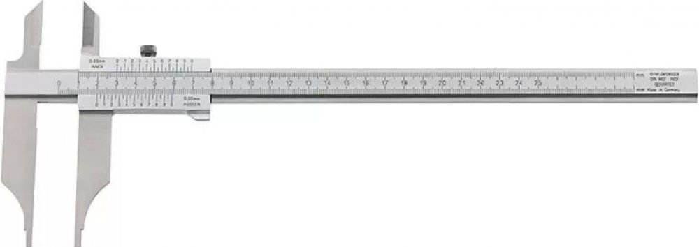 Provedení: Z tvrzené nerezové oceli, odečítací stupnice a nonius chromované do matna, laserem velmi přesně gravírované měřicí hroty a aretační šroubek.