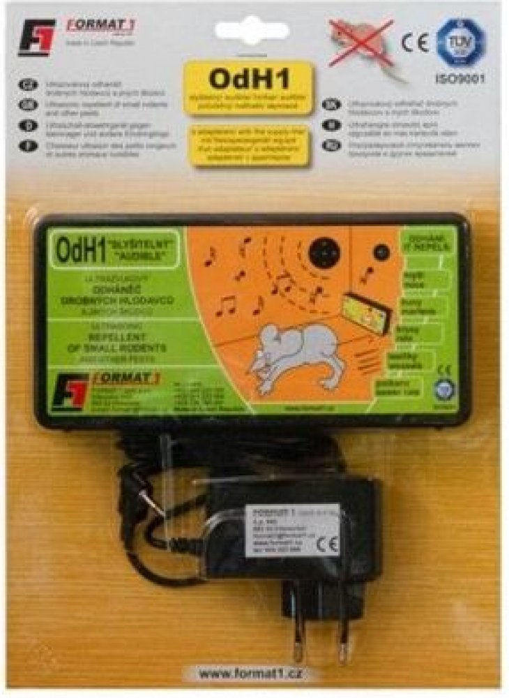 Odháněč hlodavců ultrazvukový slyšitelný s adaptérem FORMAT1 Odháněč hlodavců ultrazvukový od značky FORMAT1 je efektivní zařízení pro ochranu prostor před myšmi, krysami, kunami a dalšími škůdci. Tento elektrický plašič vytváří nepříjemné zvukové prostředí na hranici slyšitelného zvuku a ultrazvuku, čímž postupně nutí škůdce opustit chráněnou oblast. Díky náhodné změně zvuků je minimalizována možnost návyku škůdců. Přístroj je ekologický, nevyužívá chemických přísad a je bezpečný pro zvířata. Vhodný pro neobydlené prostory jako sklepy, garáže nebo půdy o velikosti do 100 m². Český výrobek s dlouhou tradicí, napájený adaptérem, který je součástí balení. Hlavní výhody odháněče: efektivní ochrana proti myším, krysám, kunám a dalším škůdcům náhodně se měnící zvuk minimalizuje možnost návyku ekologické řešení bez chemických přísad bezpečný pro domácí zvířata vhodný pro neobydlené prostory do 100 m² kompaktní rozměry a jednoduché napájení adaptérem Parametry odháněče: rozměry: šířka 185 mm, výška 88 mm, hloubka 31 mm hmotnost bez adaptéru: 150 g napájení: elektrické pomocí adaptéru účinná plocha: do 100 m² Obsah balení odháněče: 1x odháněč hlodavců ultrazvukový FORMAT1 1x adaptér pro napájení Oblast použití odháněče: sklepy, garáže, půdy a jiné neobydlené prostory chalupy a rekreační objekty uzavřené prostory o velikosti do 100 m²