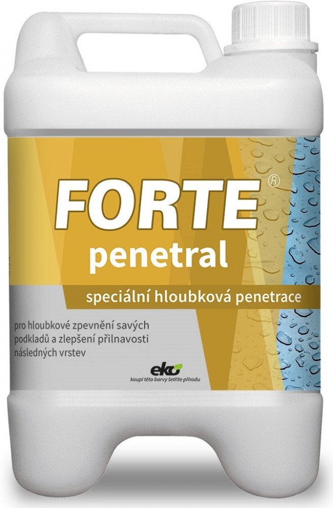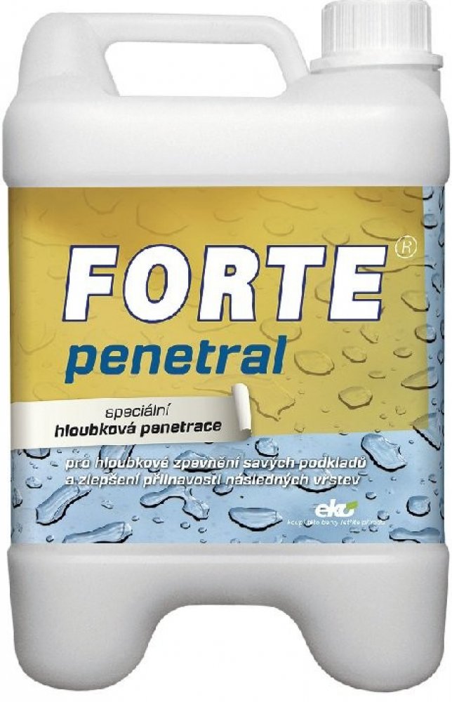 Forte Penetral se používá pro penetraci betonu, omítek, vláknocementových a sádrokartonových desek, pro zpevnění savých podkladů a zlepšení přilnavosti následných vrstev tmelů, lepidel příp. nátěrových hmot. FORTE Penetral není vhodný na vlhké podklady.