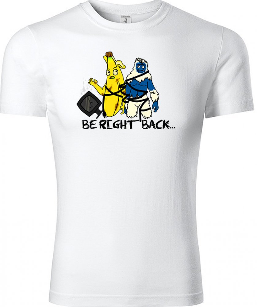 Tričko Be Right Back Potěšte fanouška hry Fortnite parádním tričkem s banánem Peelym a yetim Trogem.Materiál je ze 100% bavlny a potisk je velice kvalitní. Tohle triko si zamiluje každý. Vlastnosti a údržba Originální design ze hry Fortnite Vyrobeno z kvalitní 100% bavlny Pratelné na 40 °C Tričko pro dámy i pány Bez bočních švů Elastan v průkrčníku - drží tvar