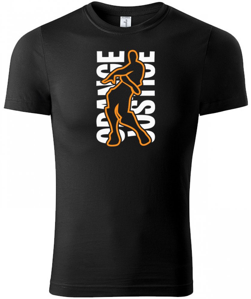 Bavlněné tričko s potiskem tance Orange Justice, by proto nemělo chybět v šatníku pravého fanouška.