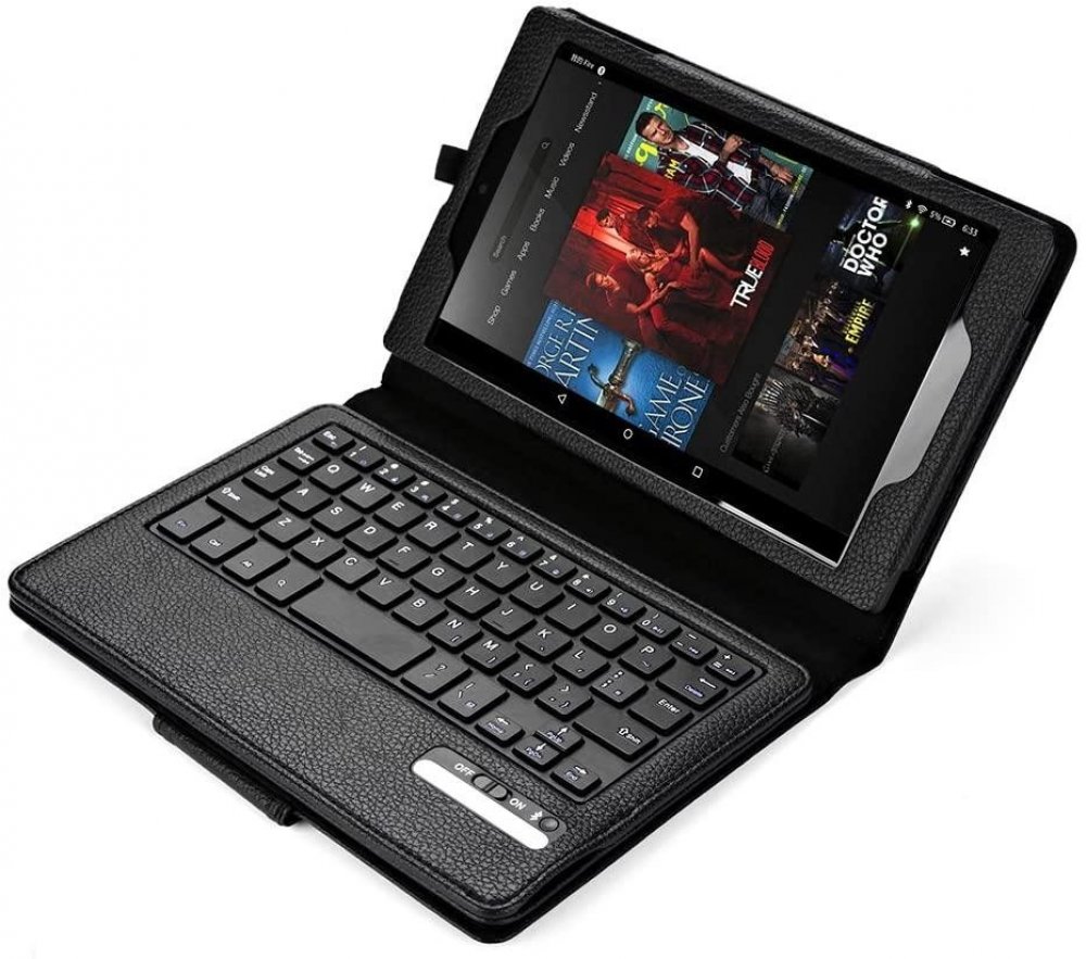Nejenže je toto pouzdro stylové a elegantní a chrání váš tablet, ale také jeho vestavěná klávesnice vám pomůže bleskurychle vyřídit všechny emaily a vzkazy na Facebooku. Pouzdro s klávesnicí, které je možné připojit k tabletu přímo přes micro USB konektor. Je vyrobeno z eko-kůže. Upevnění pomocí magnetu. Pouzdro Protect s bluetooth klávesnicí v černé barvě je určeno pro tablet knih Amazon Kindle Fire HD 7" (2. generace). Tablet je napevno zastrčen v koženém výřezu, který je přesně uzpůsoben pro tento model. Přední desky lze otočit o 360° a pouzdro můžete pohodlně držet v jedné ruce. Obal má magnetické zavírání, které je ukryto uvnitř předních desek. Výhodou je, že Vám nikde nepřekáží zavírací pásky apod. Pouzdro drží pevně zavřené.