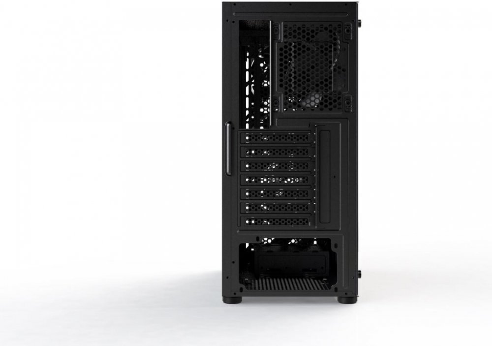 Počítačová skříň s průhledným předním a bočním panelem, interní pozice: 1x 3,5“ a 1x 3,5"/2,5"; prostor pro až 6 ventilátorů (4x 120mm s fixním RGB osvětlením předinstalovaný), horní panel: 1x USB 3.2 Gen1, 2x USB 2.0, 2x 3,5 mm jack; kompatibilní se základními deskami ATX, micro ATX a mini-ITX.