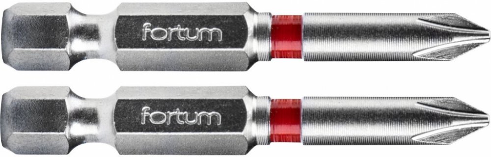 Bit PH prodloužený 2ks Fortum jádro bitu je z oceli třídy S2 (dosahuje vrypové tvrdosti 61-62 HRC) při zachování výjimečné pevnosti v rozsahu 13,2-14,7 Nm přesně frézované povrchová úprava pískováním šestihran 1/4" velikost hrotu, délka bitu: v tabulce s variantami balení 2 ks