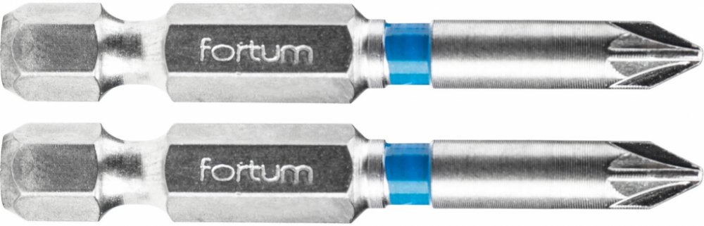 Bit PZ prodloužený 2ks Fortum jádro bitu je z oceli třídy S2 (dosahuje vrypové tvrdosti 61-62 HRC) při zachování výjimečné pevnosti v rozsahu 13,2-14,7 Nm přesně frézované povrchová úprava pískováním šestihran 1/4" velikost hrotu, délka bitu: v tabulce s variantami balení 2 ks