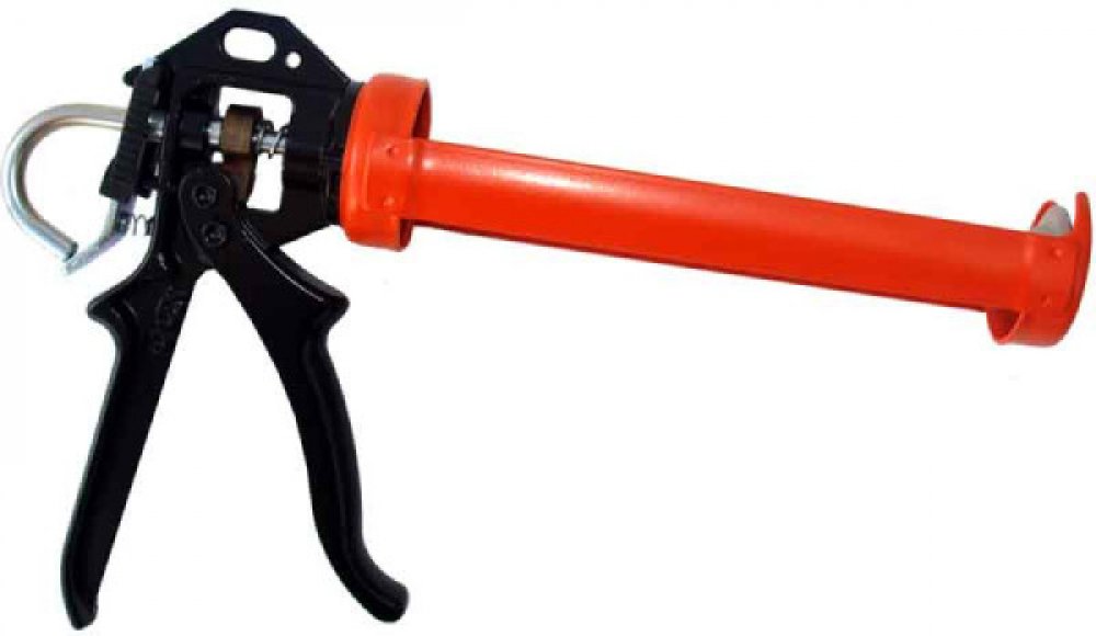 - knoflík pro přepínaní zpětného kroku; pomocí tohoto knoflíku lze pistoli nastavit do dvou poloh - zapnutí nebo vypnutí funkce zpětného kroku; zapnutím zpětného kroku se zamezí tmelu ve vytékání z kartuše poté, co je tlak na spoušť uvolněn