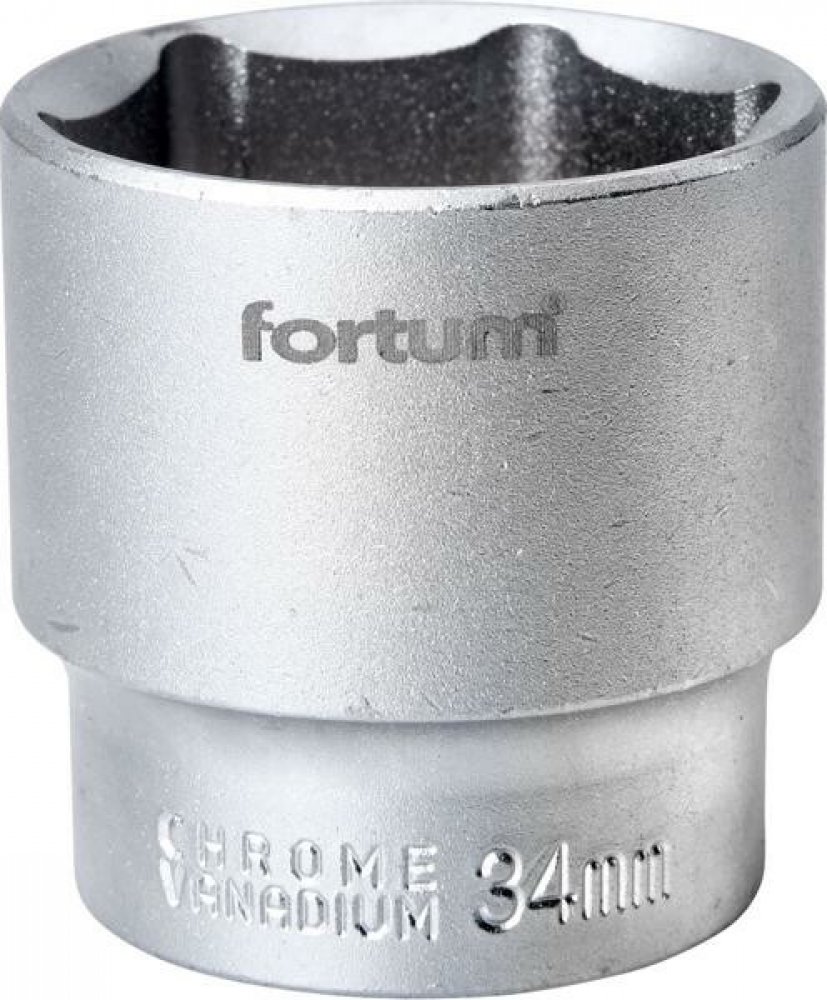 hlavice nástrčná 1/2", 34 mm, L 44 mm. Větší odolnost. Nástrčné klíče Fortum jsou odlévané z chrom-vanadové oceli 61CrV5 a upravené na NCS strojích kalené v oleji a dokalné po obvodu pro dosažení optimální tvrdosti a pevnosti tenkostěnné konstrukce. 61CrV5 a 61CrV4 (označovaná tako 6150 a 6140) je nejvyšší třída chrom-vanadové oceli. Kalená a povrchově upravená matným tvrdochromem pro dosažení opt...