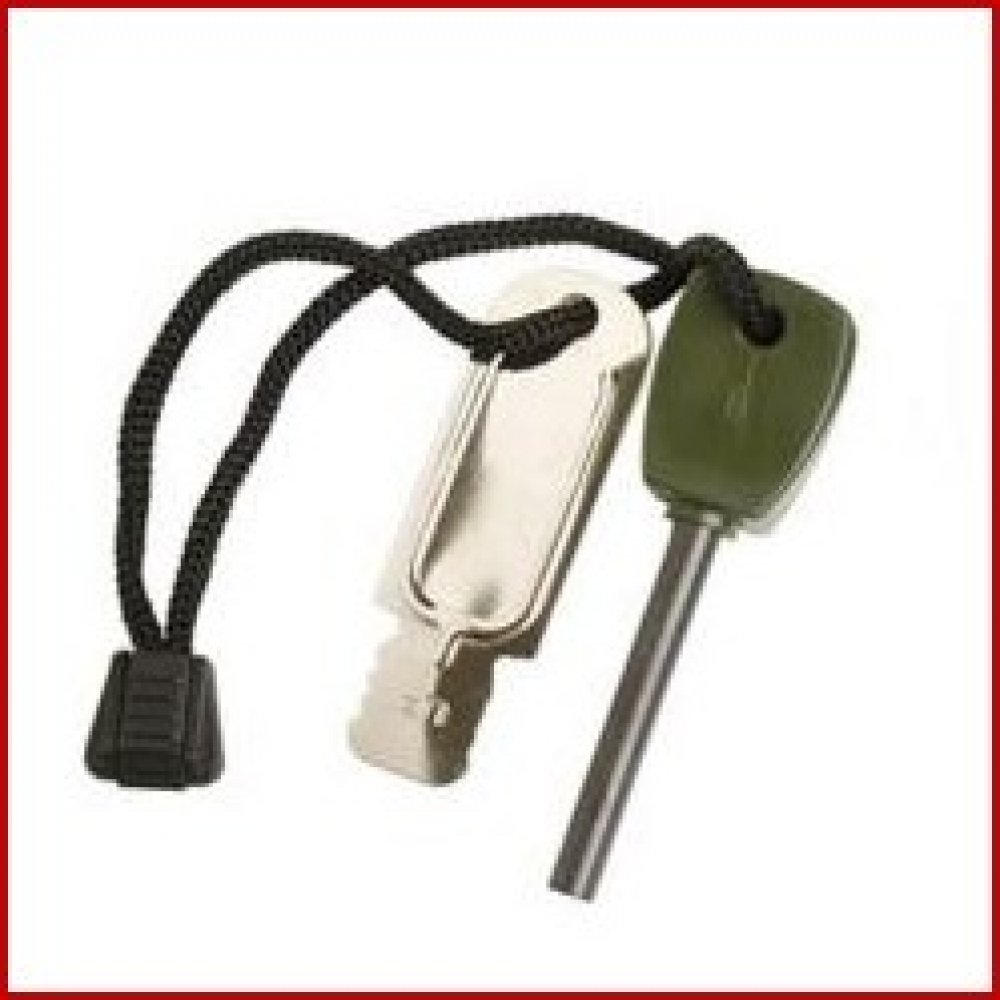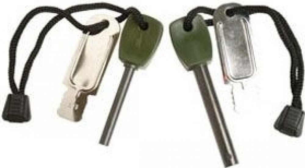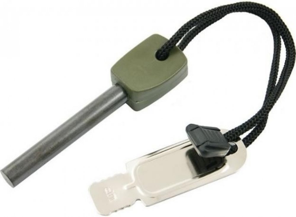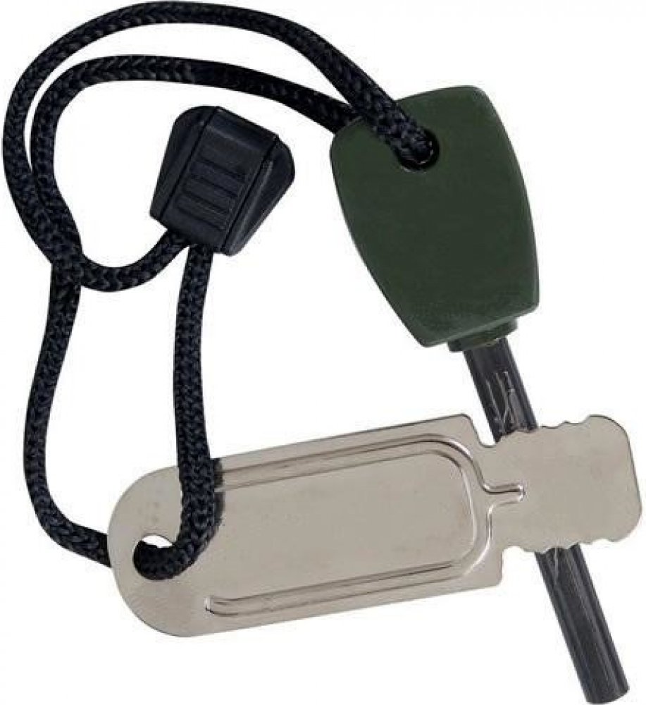 Křesadlo tvoří ocelová tyčinka z hořčíkové slitiny a s plastovým držákem. Je navlečena společně s křesacím plíškem na černém nylonovém provázku.