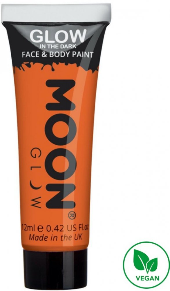 Fosforující oranžová UV barva na tělo a obličej o obsahu 25 ml. Po nasvícení zdrojem světla svítí ve tmě, kde vydrží svítit celou noc.