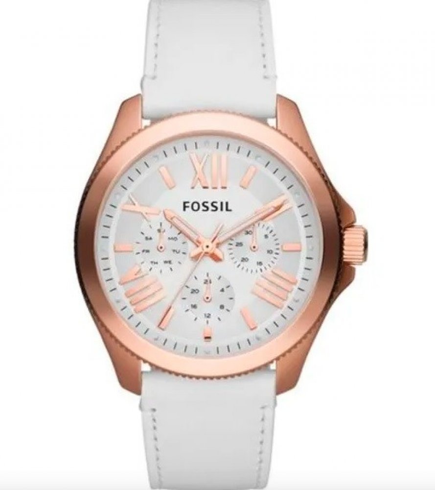 Popis: Určení (pro koho): Dámské Značka: Fossil Styl: Módní Vodotěsnost: 100 m Barva řemínku: Bílá Materiál řemínku: Kůže Barva ciferníku: Bílá Ciferník: Analogový Strojek: Quartz- baterie Sklíčko: Minerální Tělo/pouzdro: Ocel Barva pouzdra: Rose gold Tvar hodinek: kulaté Šířka řemínku: 20 mm Průměr pouzdra: 41 mm Záruka: 2 roky