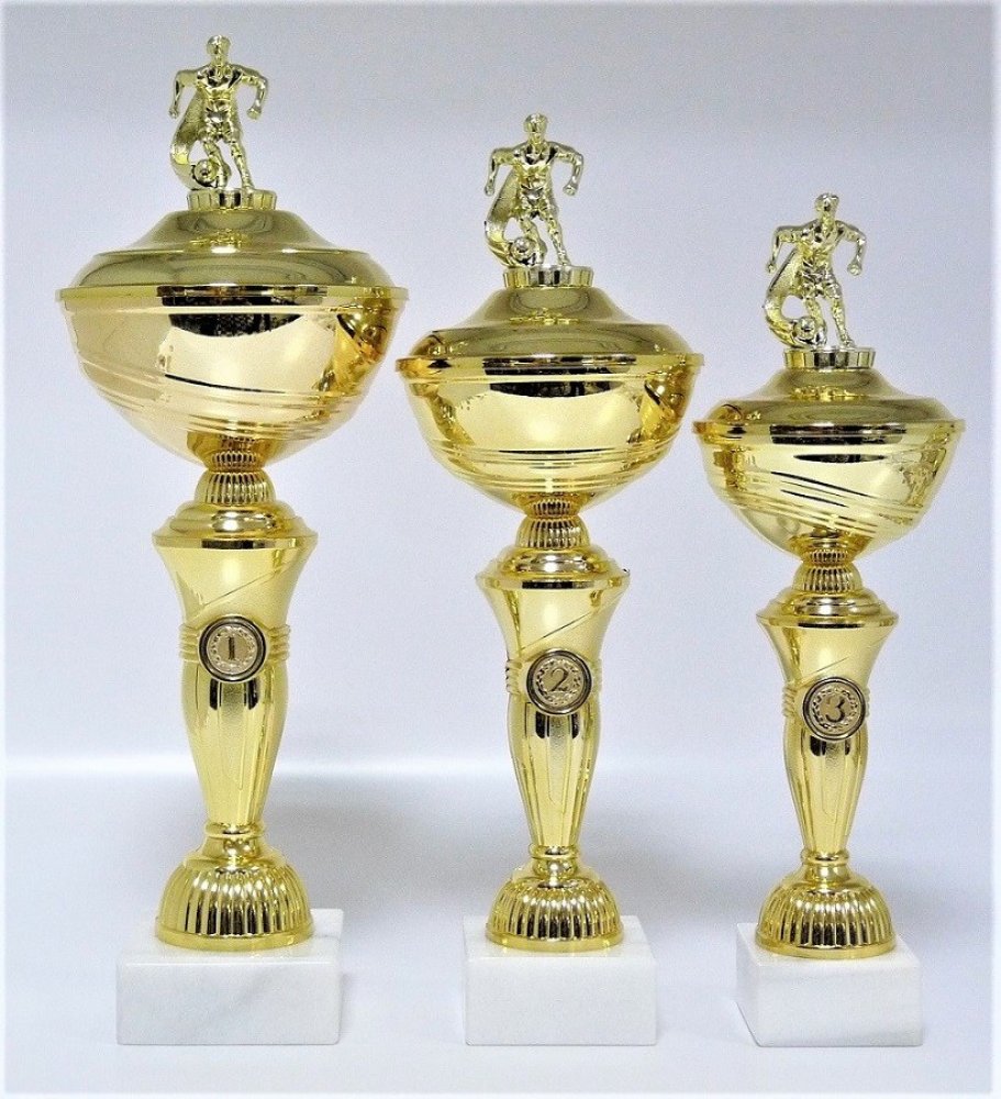 X23-P004. Poháry s pořadím viz. další foto. Výška pohárů včetně figurky je uvedena za lomítkem katalogového čísla. Průměr kalichů je 16, 14, 12 cm. Při nákupu jedné sady (X23../44/41/37cm)- text na štítky napište jen do rubriky "štítek na" např. O POHÁR PRIMÁTORA 10.7.2021 Plzeň a do součtu štítků zadejte 3 !!! Ukázka možného zpracování štítku - viz.další foto. Pokud objednáváte poháry ve větším p...