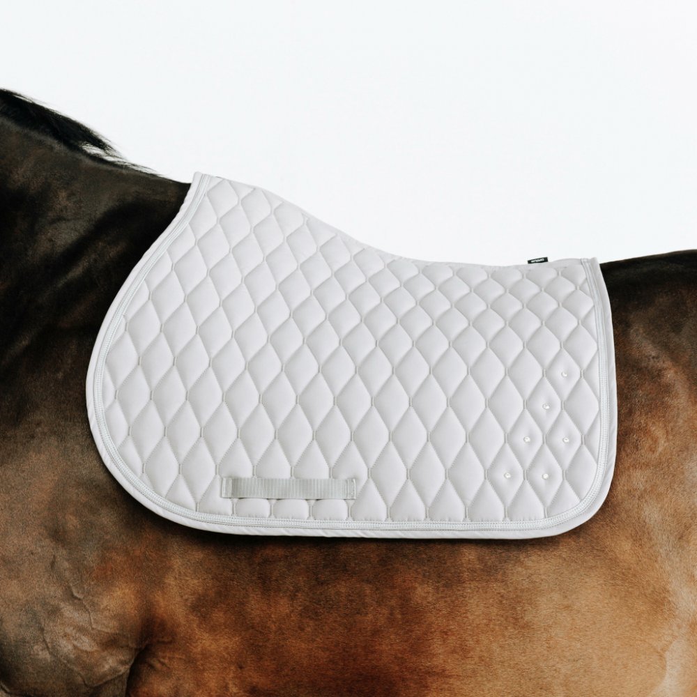 Elegantní a pohodlná podsedlová dečka. Hledáte elegantní a pohodlnou podsedlovou dečku? Tento model s kamínky odvádí pot a přizpůsobí se tělesné stavbě vašeho koně. Elegantní dečka s propracovaným střihem přesně kopíruje anatomii koně. |Použité materiály jsou velmi elegantní a střih respektuje potřeby koně. Zakřivení a švy na horní linii jsou navrženy tak, aby se dečka co nejlépe přizpůsobila hřbetu koně, netlačila na něj a nezpůsobovala nepohodlí. |Velikost je univerzální. Dečka je vhodná pro koně a poníky ze sekce D. |Materiál na vnitřní straně dobře odvádí pot a rychle schne. Materiál na vnější straně je saténový, velmi lehký a také rychle schne. |Dečka 500 se hodí pod univerzální a skoková sedla. Nehodí se však pod westernová a drezurní sedla.