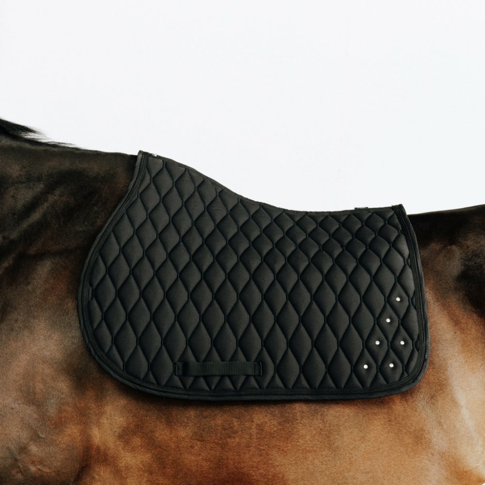 Elegantní a pohodlná podsedlová dečka. Hledáte elegantní a pohodlnou podsedlovou dečku? Tento model s kamínky odvádí pot a přizpůsobí se tělesné stavbě vašeho koně. Elegantní dečka s propracovaným střihem přesně kopíruje anatomii koně. |Použité materiály jsou velmi elegantní a střih respektuje potřeby koně. Zakřivení a švy na horní linii jsou navrženy tak, aby se dečka co nejlépe přizpůsobila hřbe...