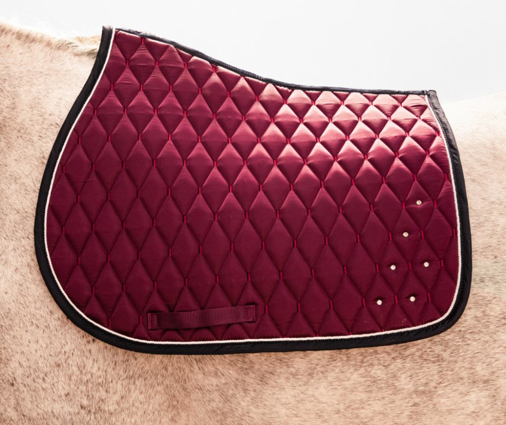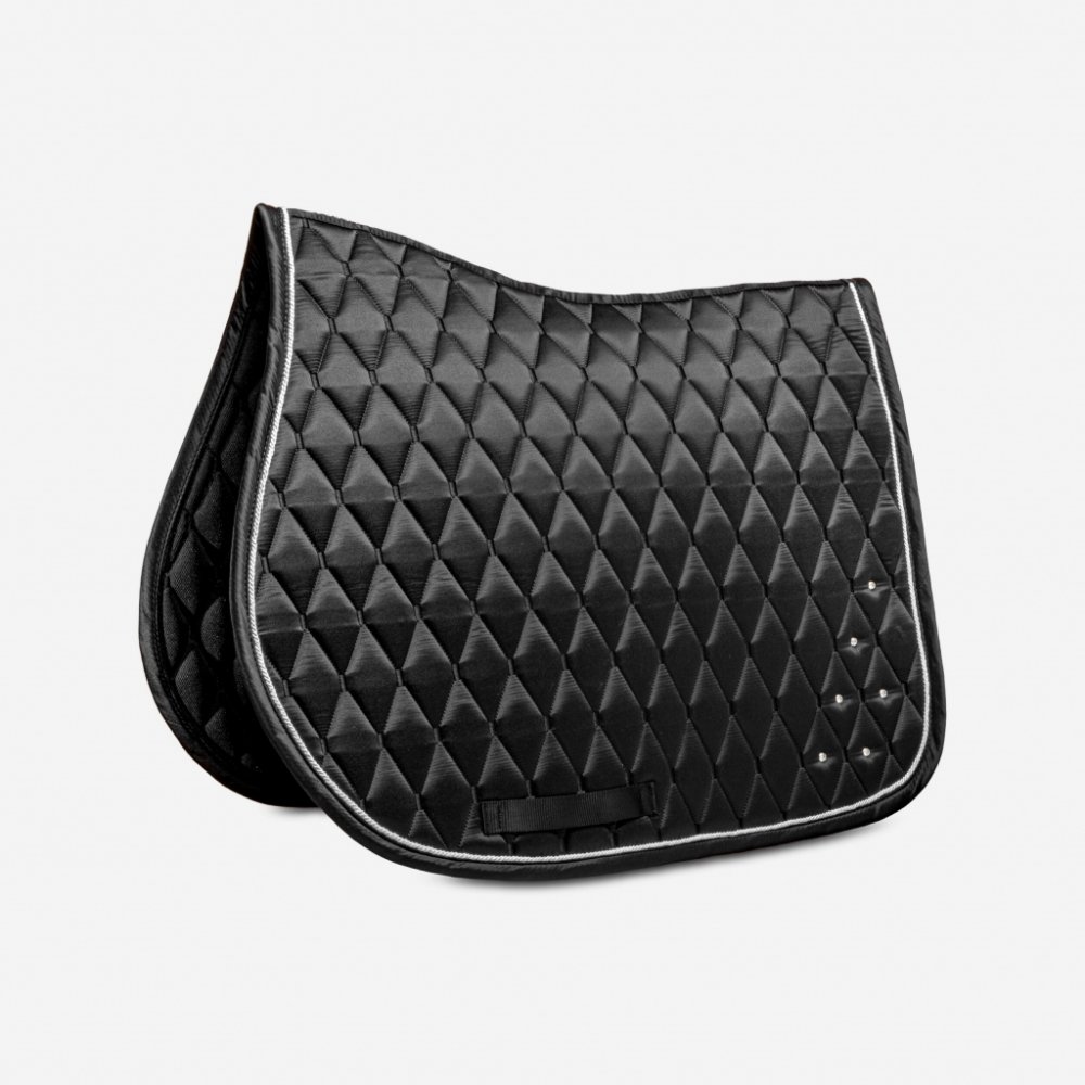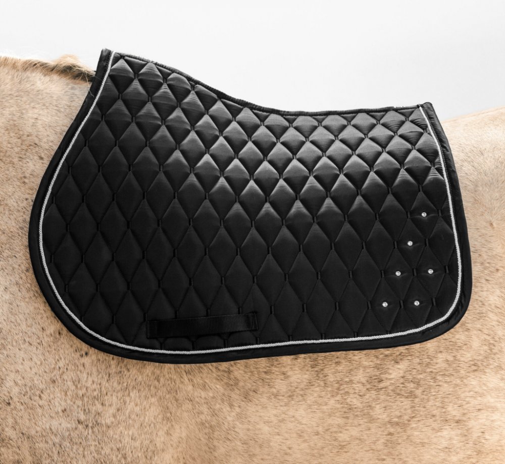 Saténová dečka se štrasovými prvky odvádí pot a přizpůsobí se tělesné stavbě koně.