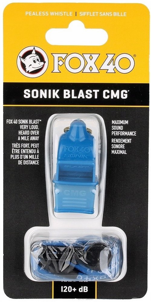 Profesionální píšťalka FOX s jasným a hlasitým zvukem. Obsahuje CMG materiál (The Cushioned Mouth Grip), což je thermoplastický materiál, který poskytuje úchop v puse a ochranu pro zuby. Píšťalky s tímto materiálem jsou ideání pro ty, kteří potřebují mít píšťalku v ústech na delší časové úseky. Dodávaná v balení s praktickou šňůrkou na krk.