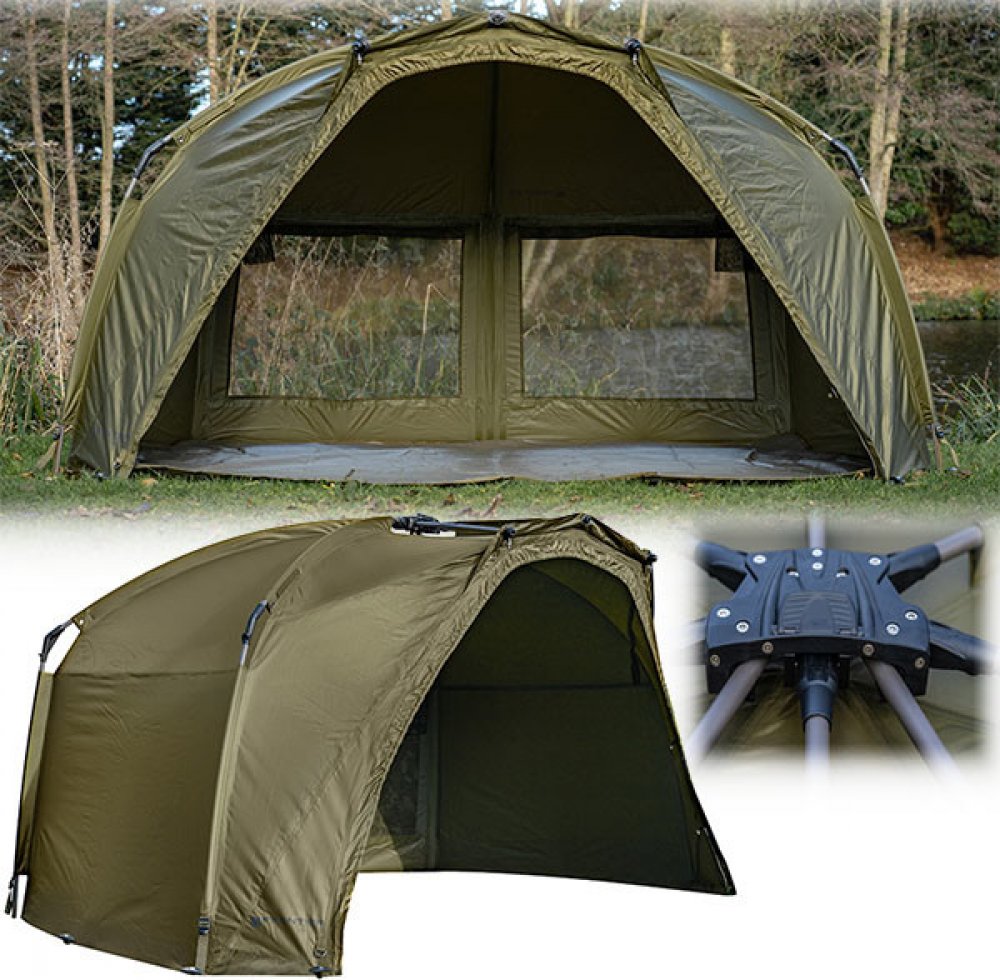 Unikátny centrálny systém ponúka rýchle postavenie a zabalenie, zatiaľ čo vylepšený tvar hliníkovej konštrukcie zaistí väčší úžitkový priestor a priestor pre hlavu, než kedykoľvek predtým pri tomto type bivaku. Použitím prevereného materiálu Ven-tec štylizovaného v khaki farbe a moskytiérovým camo ventilačným oknám, sú tieto bivaky nielen vysoko spoľahlivé, ale navyše aj skvele vyzerajú.