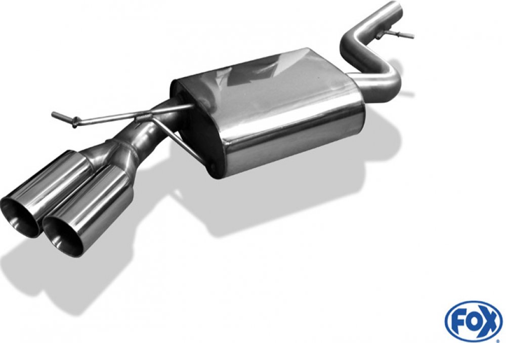 FOX koncový tlumič s dvojitým vyústěním na jedné straně 2x76mm pro BMW řady 3 (E90/91/92) rok výroby od 2005Specifikace:Výfuková část: koncový tlumič s dvojitým vyústěním na jedné straně 2x76mmZnačka a model vozu: BMW řady 3 (E90/91/92)Rok výroby: od 2005Motorizace: 320DTechnická poznámky:K tomuto produktu výrobce neuvádí žádné technické poznámkyKaždý výfukový systém Fox je vyvinut a vyroben pro použití na konkrétním vozidle. V závislosti na typu vozidla a jeho motoru je naší snahou dosáhnout co nejlepšího zvukového projevu a nejlepšího výkonu. Všechny výfukové systémy Fox jsou ve velké většině opatřeny evropskou homologací TÜV / ABE a jejich sortiment je neustále aktualizován a rozšiřován. Výfuky Fox mají již více než 20 letou tradici a po celou tuto dobu jsou 100% vyráběny v Německu