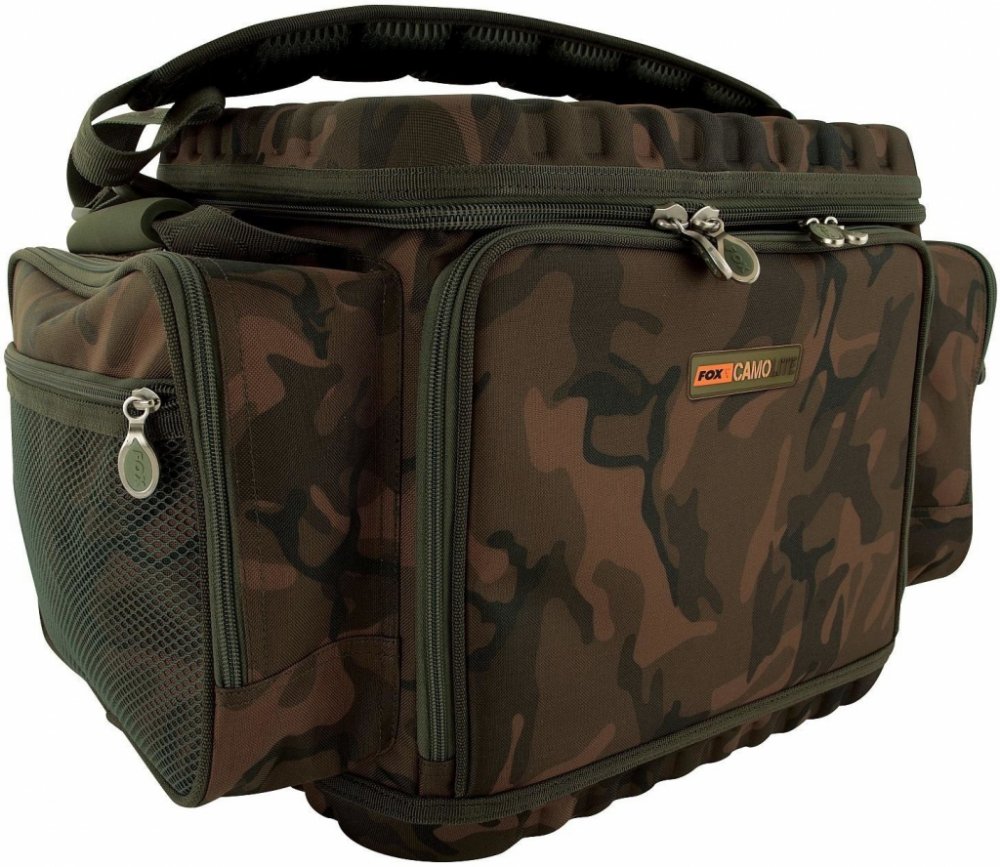 Ideální pro použití s vozíkem Explorer na výsuvném panelu na zadní straně určeného k upevnění tašky k tomuto vozíku. Ideální pro ukládání pomůcek, návnady a oblečení.Zpevněné EVA rukojeti. Odnímatelný polstrovaný ramenní popruh.Vnější a vnitřní sítované kapsy. Dvě vnější kapsy na zip pro další možnosti skladování. Přední otvor pro snadný přístup k bižuterii a dalším potřebým věcem. Zesílená základna a vrchní část. Odolné dvojité 10mm zipy.100% nepromokavý materiál 500 Denier Polyester.Stylizováno v unikátním Fox Camo vzoru. Rozměry: D57cm x Š31cm x V35cm