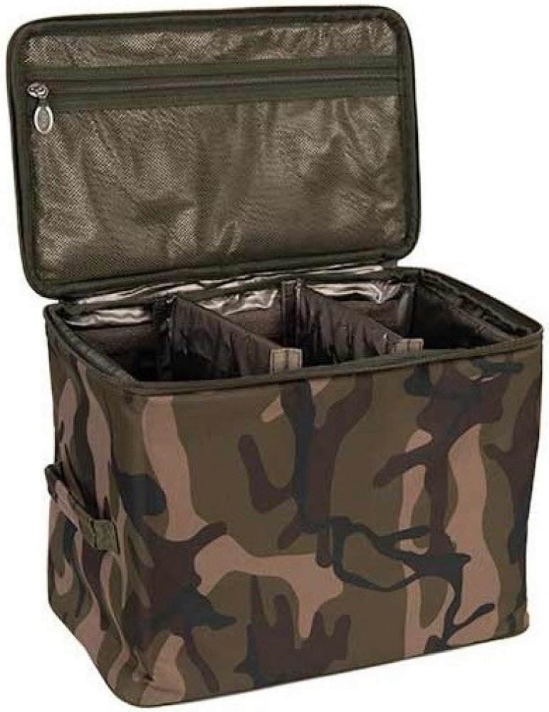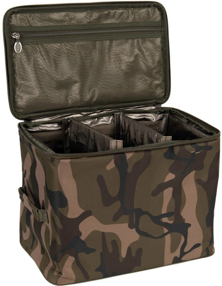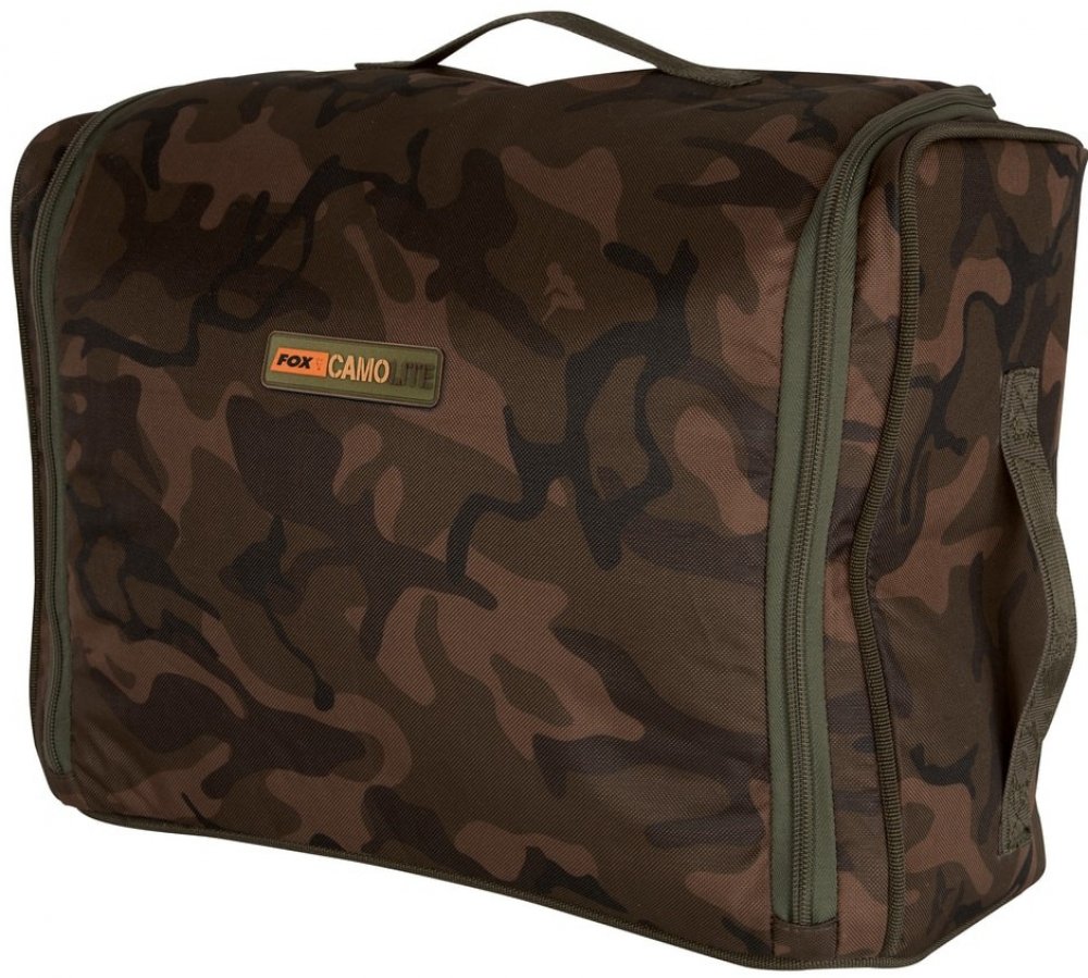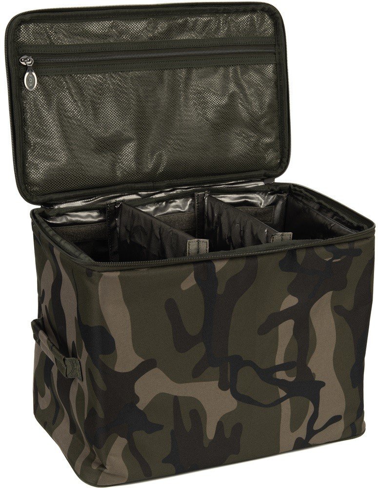 K dispozice ve dvou velikostech: Standard a Large. Ideální pro ukládání potravin a návnad. Navrženo pro umístění do středu tašky Under Barrow Bag na vozíku Explorer. Boční rukojeti pro snadné vytažení z tašky Under Barrow Bag na vozíku Explorer. 8mm dvojité odolné zipy, 100% voděodolný materiál 500 Denier Polyester. Stylizováno v unikátním Fox Camo designu. Rozměry: Large: D40cm x Š30cm x V20cm.
