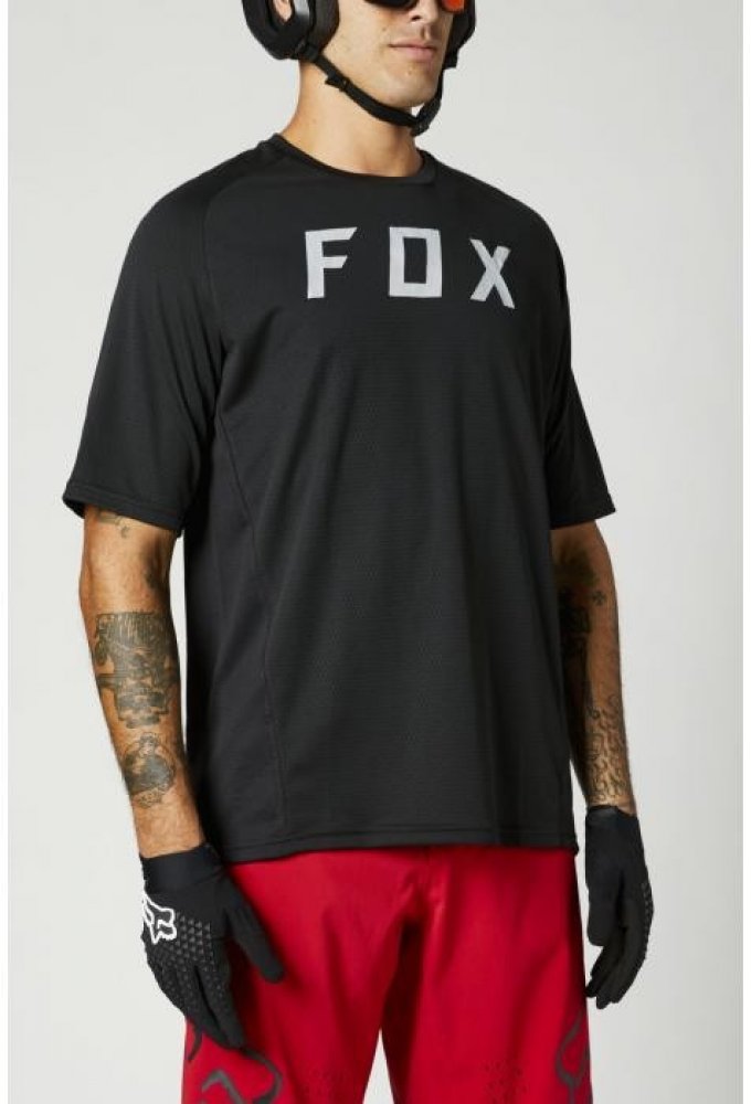 Fox 100% polyester pánské krátké rukávy černé celoroční
