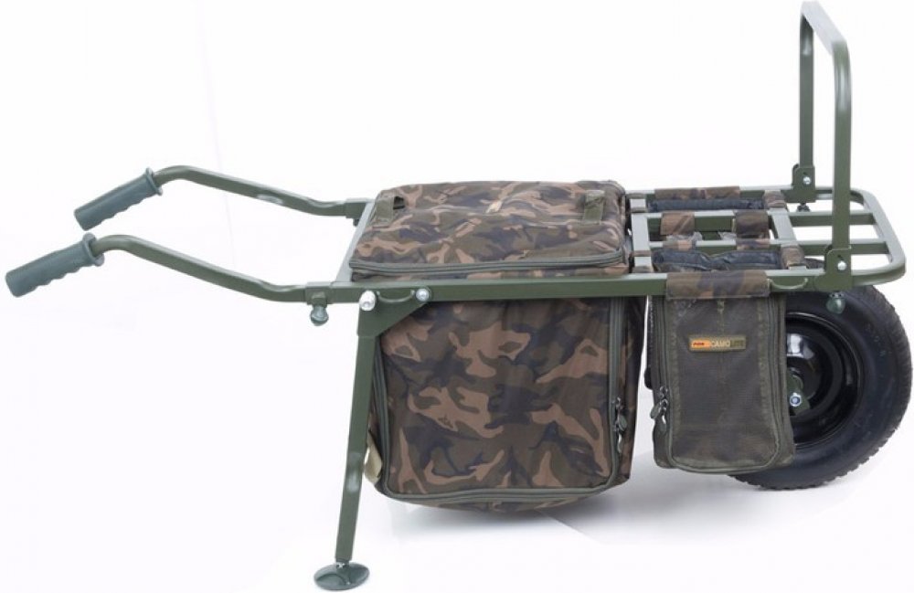 - Rozšiřitelná hrazda na velkou přední tašku – to umožňuje Camolite Barrow Bag (k dostání samostatně) tašku umístit přesně do přední části, když je vozík v režimu na delší vycházky a na vozíku je převáženo i lehátko. Při lovu bez lehátka, jednoduše zasuňte přední část stojanu a otočte Barrow Bag tak, aby směřoval směrem k Vám. Konstrukce zajišťuje, že bude vozík naprosto vyrovnaný a stabilní a to jak při použití na krátké vycházky, tak i na delší výpravy.