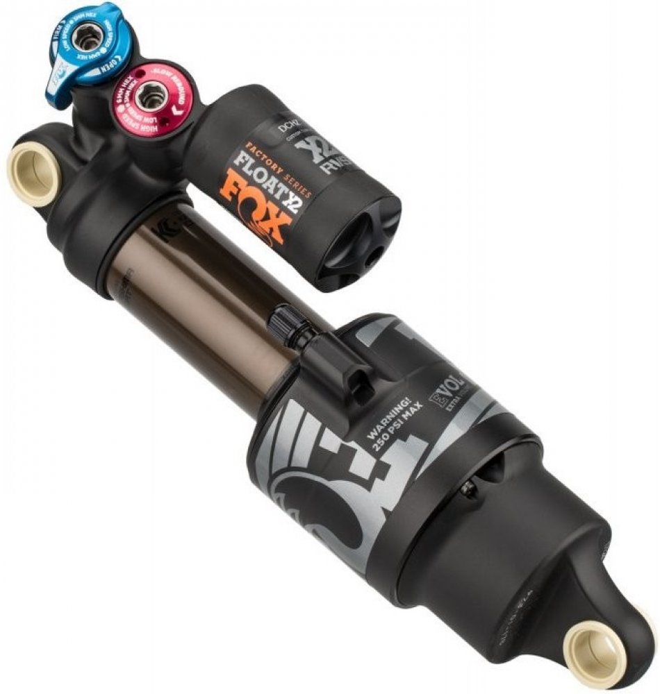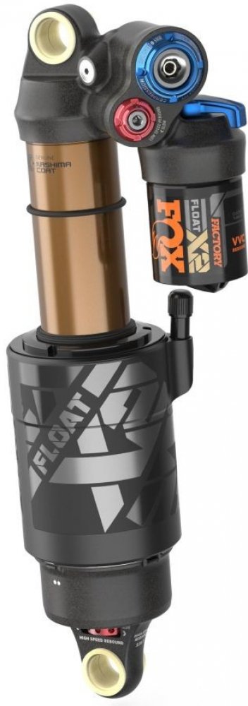 Kompletně přepracovaný dvoukomorový tlumič X2 je absolutním milníkem na trhu tlumičů. Díky samostatně nastavitelným úrovním odskoku a komprese v rozsahu vysokých a nízkých rychlostí, lze tento tlumič přizpůsobit široké škále sjezdových tratí, aby vám nabídl výkon, který jste nikdy předtím nezažili. U předchozího modelu byla vzduchová komora již optimalizována tak, aby mohla být naplněna maximálním tlakem vzduchu 300 PSI. To snižuje riziko poškození u extrémních skoků. Dále byla změněna konstrukce ventilu, aby se zabránilo ztrátě vzduchu při nafukování. Nové těsnění s nízkým třením a optimalizace vnitřní konstrukce pro větší torzní tuhost také zlepšují již tak citlivé chování. Malá expanzní nádržka umožňuje snadnější integraci tlumiče do různých rámových konstrukcí. Tlumicí systém GRIP2 převzatý z odpružených vidlic umožňuje optimální nastavení. EVOL Vzduchová komora s názvem EVOL se zvýšeným objemem pro negativní vzduchovou komoru. EVOL znamená „Extra Volume“. Toto nastavení by mělo mít také pozitivní vliv na kvalitu odpružení snížením odtrhovacího momentu tlumiče. To vede k lepší trakci a měkčí odezvě. Současně lze mírně zvednout charakteristickou křivku ve středním rozsahu zdvihu, která se stává lineárnější. Variabilní ovládání ventilů (VVC) Fox do tohoto tlumení vložil všechny své znalosti. Na základě tlumiče GRIP2 odpružených vidlic lze samostatně nastavit kompresi při vysoké a nízké rychlosti a odskok při vysoké a nízké rychlosti. Nastavení musí být prováděno opatrně, ale poté nabízí nekonečnou zábavu z jízdy na jakémkoli povrchu. Se systémem integrovaného ovládání proměnných ventilů (VVC) se citlivost vysokorychlostního odskoku mění pomocí listové pružiny, nikoli změnou předpětí. To vyžaduje jemně odměřenou funkci a úpravu. Kromě toho byla v průběhu celého procesu vývoje věnována pozornost použití materiálů s nízkým třením. To umožňuje velmi jemnou odezvu a výrazně zvyšuje komfort. MCU elastomerový doraz Tento doraz vyrobený z pěny Micro Cellular Urethane neabsorbuje olej a zvyšuje progresivitu konce zdvihu. KASHIMA COAT Povrchová úprava Kashima pro hladký zážitek z jízdy je k dostání výhradně u společnosti FOX. Nabízí vynikající celkový výkon, zajišťuje minimální tření a optimální odezvu s maximální odolností.