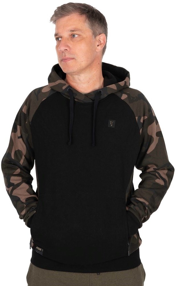Luxusní mikina s kapucí na zip v prémiové kvalitě a Fox black/camo vzoru.