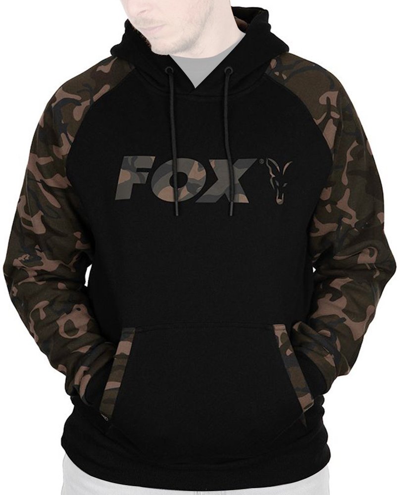 Mikina Pulovr Black/Camo s raglánovými rukávy a kapucí.