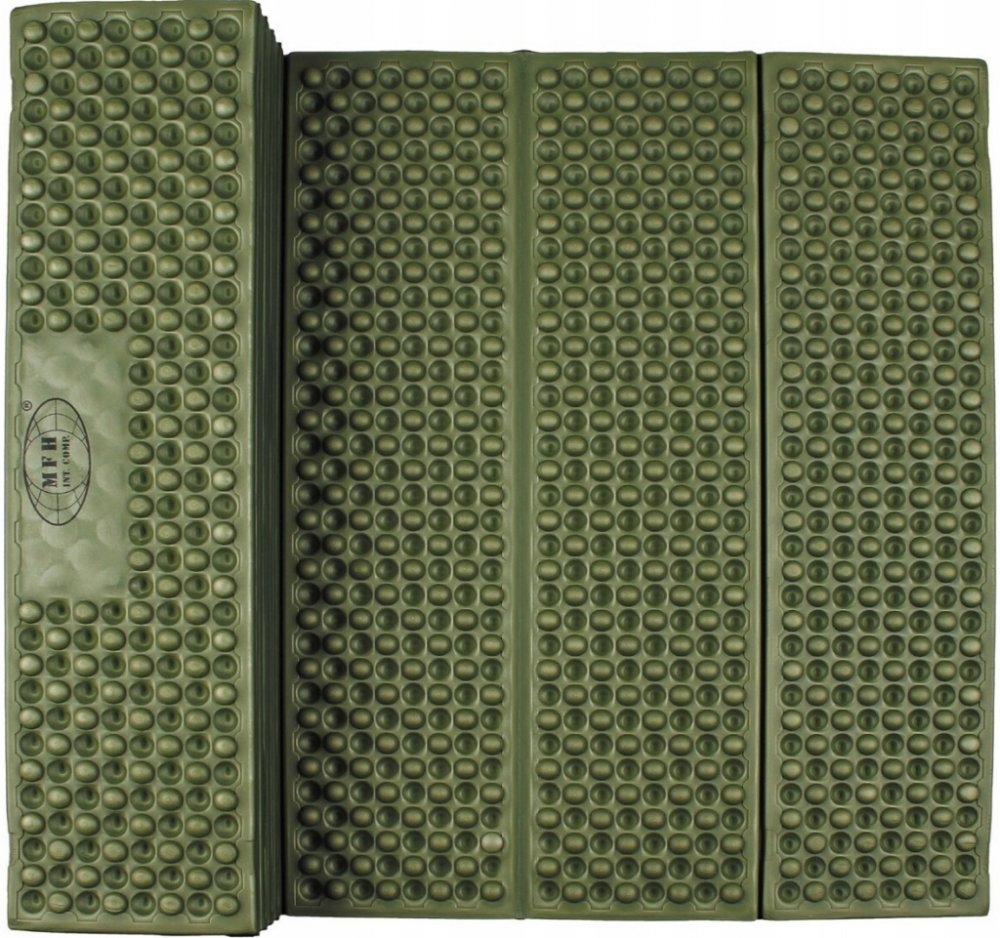 Skládací turistická podložka z pěny EVA. Povrch podložky se vyznačuje protiskluzovými vlastnostmi. Výstupky také zvyšují využitelnou tloušťku karimatky, čímž zlepšují komfort ležení a tepelně izolační účinnost. Elastické pásky zajišťují karimatku při přepravě.