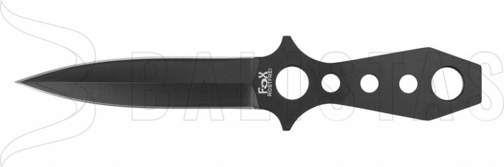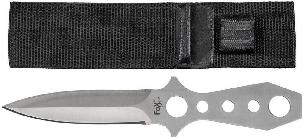Odolný a dokonale vyvážený vrhací nůž vyrobený z jednoho kusu silné nerezové oceli. Čepel je dlouhá 12,5 cm a celková délka nože činí 22,5 cm. S tímto modelem je dodáváno praktické nylonové pouzdro, které si můžete připevnit na opasek.