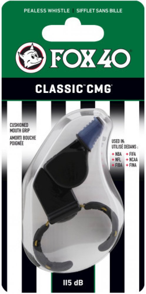 Profesionální píšťalka FOX s jasným a hlasitým zvukem. Obsahuje CMG materiál (The Cushioned Mouth Grip), což je thermoplastický materiál, který poskytuje úchop v puse a ochranu pro zuby. Píšťalky s tímto materiálem jsou ideání pro ty, kteří potřebují mít píšťalku v ústech na delší časové úseky.