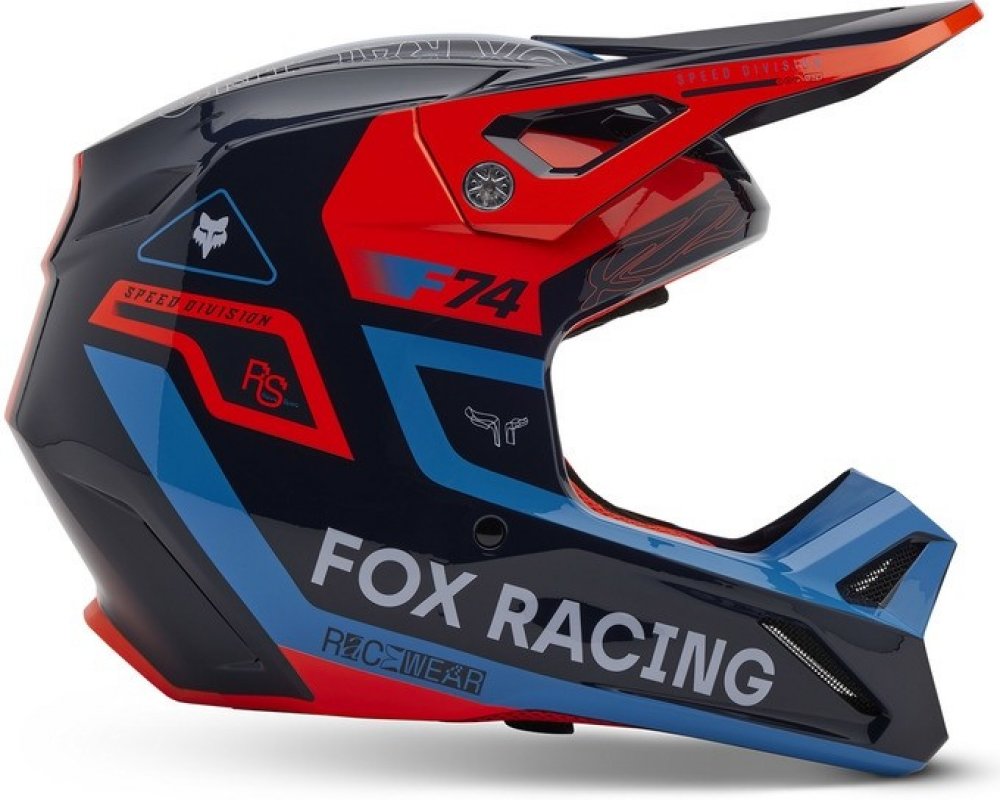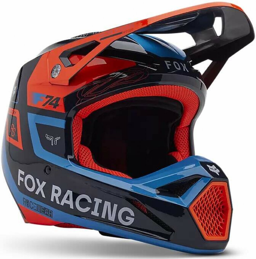 FOX motokrosová přilba V1 Race Spec Helmet černá/fluo oranžová, světle modrá