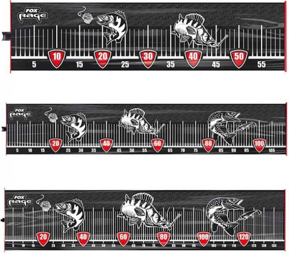 S novým kompaktním PVC měřidlem už nikdy nepřijdete o váš nový osobní rekord. K dostání ve třech velikostech: S do 60cm (Okoun), M do 110cm (Candát) a L do 140cm (Štika). Začátek měřidla opatřený odolným červeným akrylátovým čelem v elegantním Fox Rage design. Nepostradatelná součást výbavy každého rybáře.
