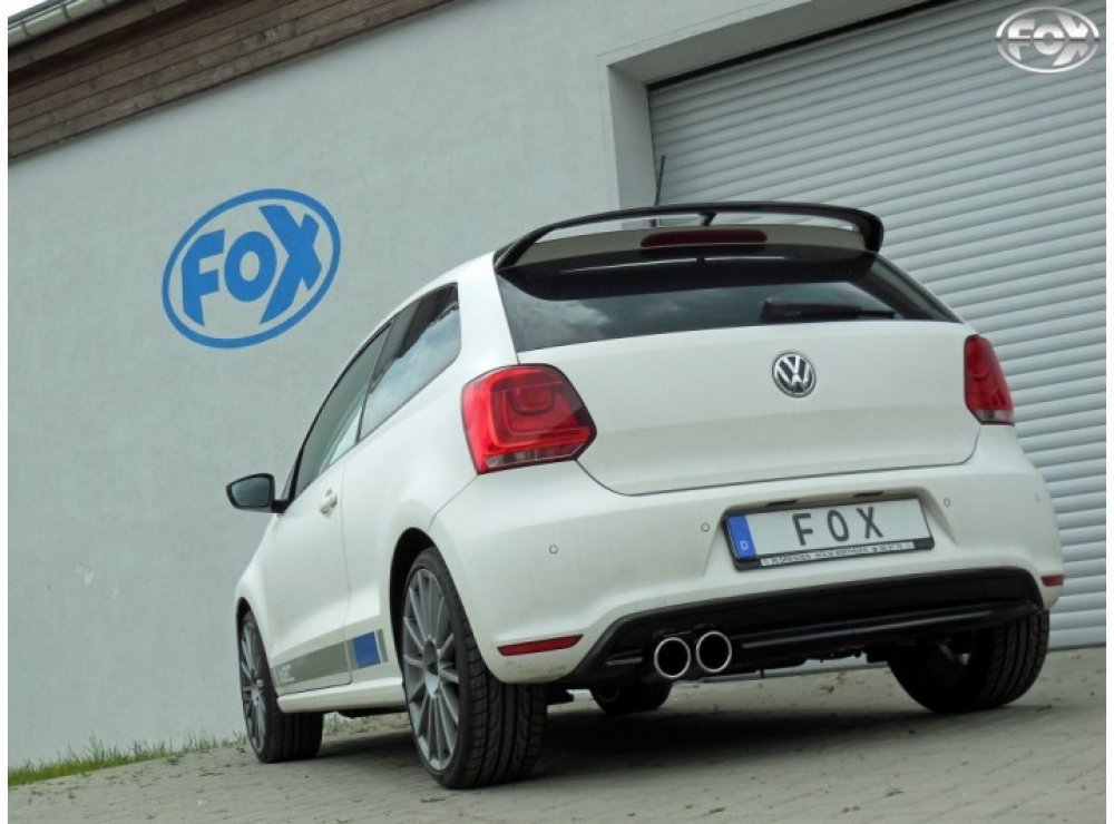 FOX koncový tlumič s dvojitým vyústěním na jedné straně 2x90mm pro VW Polo 6R WRC rok výroby od 2013Specifikace:Výfuková část: koncový tlumič s dvojitým vyústěním na jedné straně 2x90mmZnačka a model vozu: VW Polo 6R WRCRok výroby: od 2013Motorizace: 2.0Technická poznámky:K tomuto produktu výrobce neuvádí žádné technické poznámkyKaždý výfukový systém Fox je vyvinut a vyroben pro použití na konkrétním vozidle. V závislosti na typu vozidla a jeho motoru je naší snahou dosáhnout co nejlepšího zvukového projevu a nejlepšího výkonu. Všechny výfukové systémy Fox jsou ve velké většině opatřeny evropskou homologací TÜV / ABE a jejich sortiment je neustále aktualizován a rozšiřován. Výfuky Fox mají již více než 20 letou tradici a po celou tuto dobu jsou 100% vyráběny v Německu.&