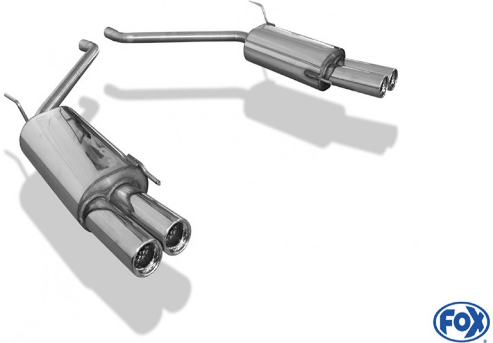 FOX koncový tlumič s dvojitým vyústěním na každé straně 2x80mm pro VW T4 rok výroby od 1991Specifikace:Výfuková část: koncový tlumič s dvojitým vyústěním na každé straně 2x80mmZnačka a model vozu: VW T4Rok výroby: od 1991Motorizace: 1.9-2.8/1.9D-2.5TDiTechnická poznámky:POZOR: Díl je možné použít pouze jako součást výfukového systému Fox (koncový tlumič + střední tlumič / náhrada tlumiče).Každý výfukový systém Fox je vyvinut a vyroben pro použití na konkrétním vozidle. V závislosti na typu vozidla a jeho motoru je naší snahou dosáhnout co nejlepšího zvukového projevu a nejlepšího výkonu. Všechny výfukové systémy Fox jsou ve velké většině opatřeny evropskou homologací TÜV / ABE a jejich sortiment je neustále aktualizován a rozšiřován. Výfuky Fox mají již více než 20 letou tradici a po celou tuto dob