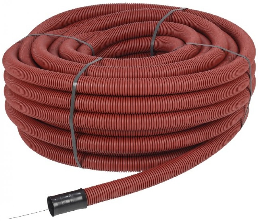 Kabuflex® R červená je ohebná kabelová chránička z PE v červené barvě, bezhalogenová, v sendvičové konstrukci, vně vlnitá, uvnitř s černou izolací, na jedné straně s nasazenou oboustrannou násuvnou spojkou (těsná proti vnikání písku). Tato kabelová chránička se používá jako ochranná nebo prázdná trubka, pro velká namáhání tlakem, např. pod silnicí, parkovištěm, v půdě atd. Speciální oboustranné násuvné spojky spojují trubky s utěsněním proti vnikání písku (SD). S profilovým těsnicím kroužkem WD je dosaženo vodotěsného spoje do 0,5 bar. Kabuflex® R se standardně dodává se zatahovací šňůrou. Hlavní výhodou je vysoká pevnost v tlaku.