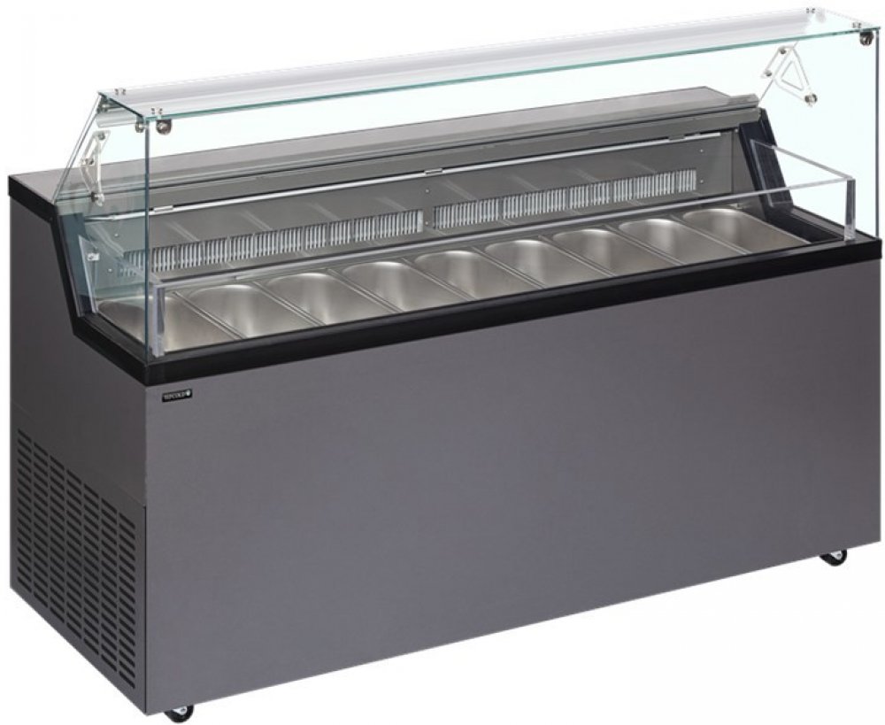 Distributory zmrzliny řady Mirabella představují krok kupředu v designu i prezentaci produktů, což pomáhá přilákat zákazníky. Distributory Mirabella jsou samozřejmě vhodné pro standardní gastronádoby na zmrzlinu GN 360x165x120 mm (nejsou součástí balení) a pod vystavenou zmrzlinou se nachází úložný prostor pro snadné doplňování nejprodávanějších příchutí.