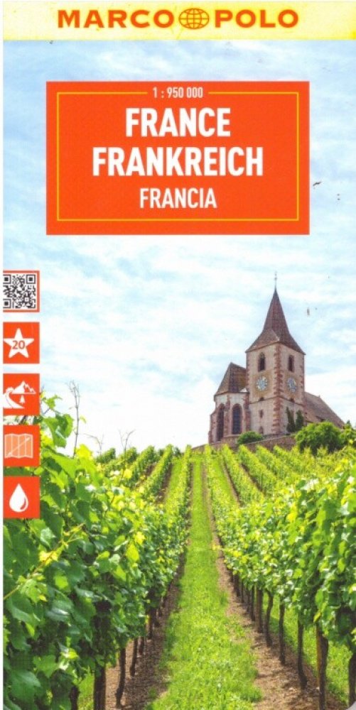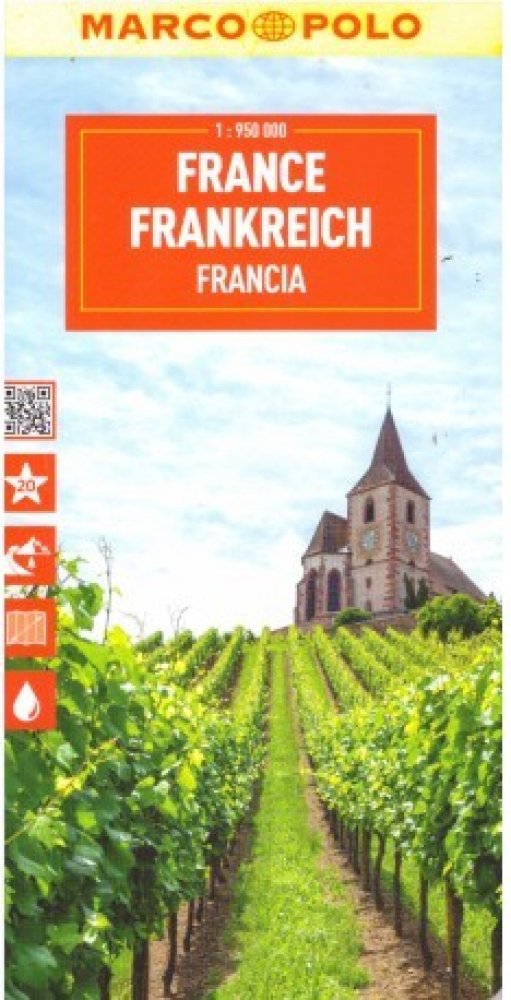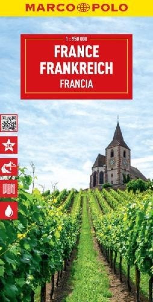 Marco Polo France Map: the ideal map for your tripLet the Marco Polo France Road Map guide you around this stunning country. Discover medieval cities, dramatic landscapes dotted with vineyards, picturesque towns, gorgeous beaches and majestic castles with this highly durable, detailed, touring map of France. It folds away easily and is always on standby to help when you're stuck.- Perfect touring map - the scale is 1: 1 000 000 ideal to help you tour the country by car or RV- Easy to use - the superbly clear mapping in strong colors and easy-to-read text will help you navigate the country like a local- Durable, tear-resistant map - designed to withstand the rigors of the road, the map is printed on tear-resistant, water repellent and writeable paper- Highlights included - major sights and key points of interest are marked on the map by numbered stars. Further information about these key