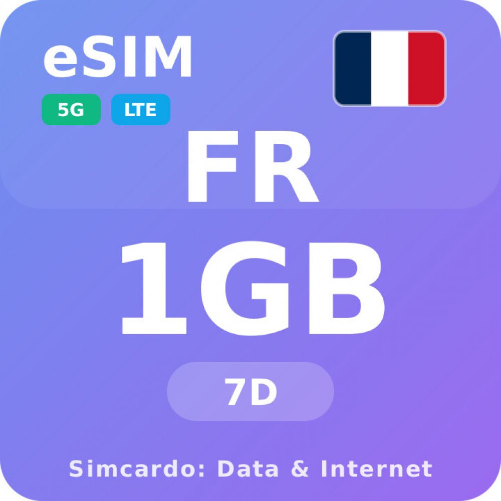 Mobilní Internet pro Francii s 1GB platný na 7 dní.