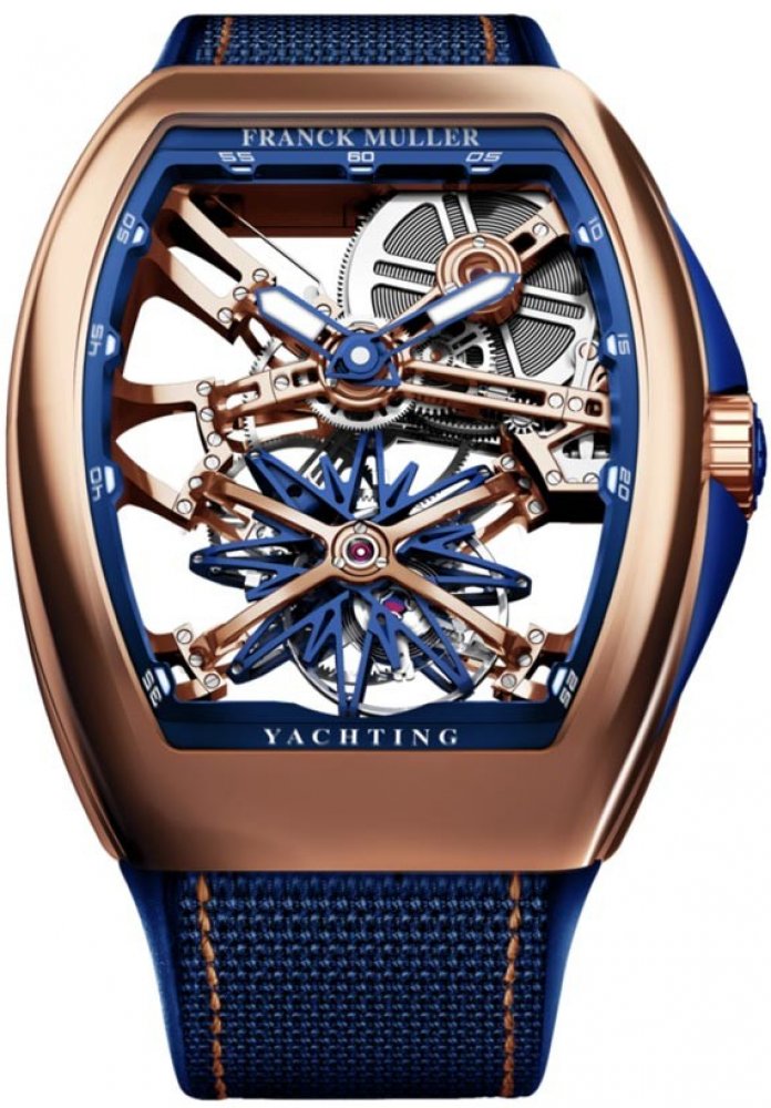 Model Franck Muller Gravity Yachting Skeleton Tourbillon je ztělesněním technické geniality, námořní elegance a vizuálního dramatu. Tento výjimečný kus haute horlogerie je navržen pro ty, kdo milují volnost oceánu a zároveň oceňují výsostné umění švýcarského hodinářství.Dominantním prvkem je skeletový číselník, který odhaluje složitou mechaniku v celé její kráse. Srdcem hodinek je ručně natahovaný strojek s impozantní rezervou chodu přibližně 120 hodin (5 dní), tikající na frekvenci 18 000 vph a osazený 25 kameny.Tourbillon, zasazený do výrazné konstrukce a nakloněný pod dynamickým úhlem, není jen technickým zázrakem, ale i silným vizuálním prvkem, který naprosto dominuje vzhledu hodinek.Soudkový pouzdro o rozměrech 53,7 × 44 mm je vyrobeno z 18karátového růžového zlata, které dodává hodinkám luxusní teplo a kontrastuje s modrým textilně-kaučukovým řemínkem. Safírové sklo chrání složitý mechanismus a zajišťuje křišťálově čistý pohled na ciferník.Díky vodotěsnosti 3 ATM (30 metrů) jsou hodinky vhodné pro každodenní nošení, přestože jejich komplexnost vybízí k obdivu spíše než ke kontaktu s vodou.Gravity Yachting Skeleton Tourbillon je symbolem extrémní řemeslné zručnosti a dobrodružného ducha. Je to hodinkový šperk, který překračuje hranice tradičního měření času a stává se uměleckým vyjádřením volnosti, přesnosti a odvahy.