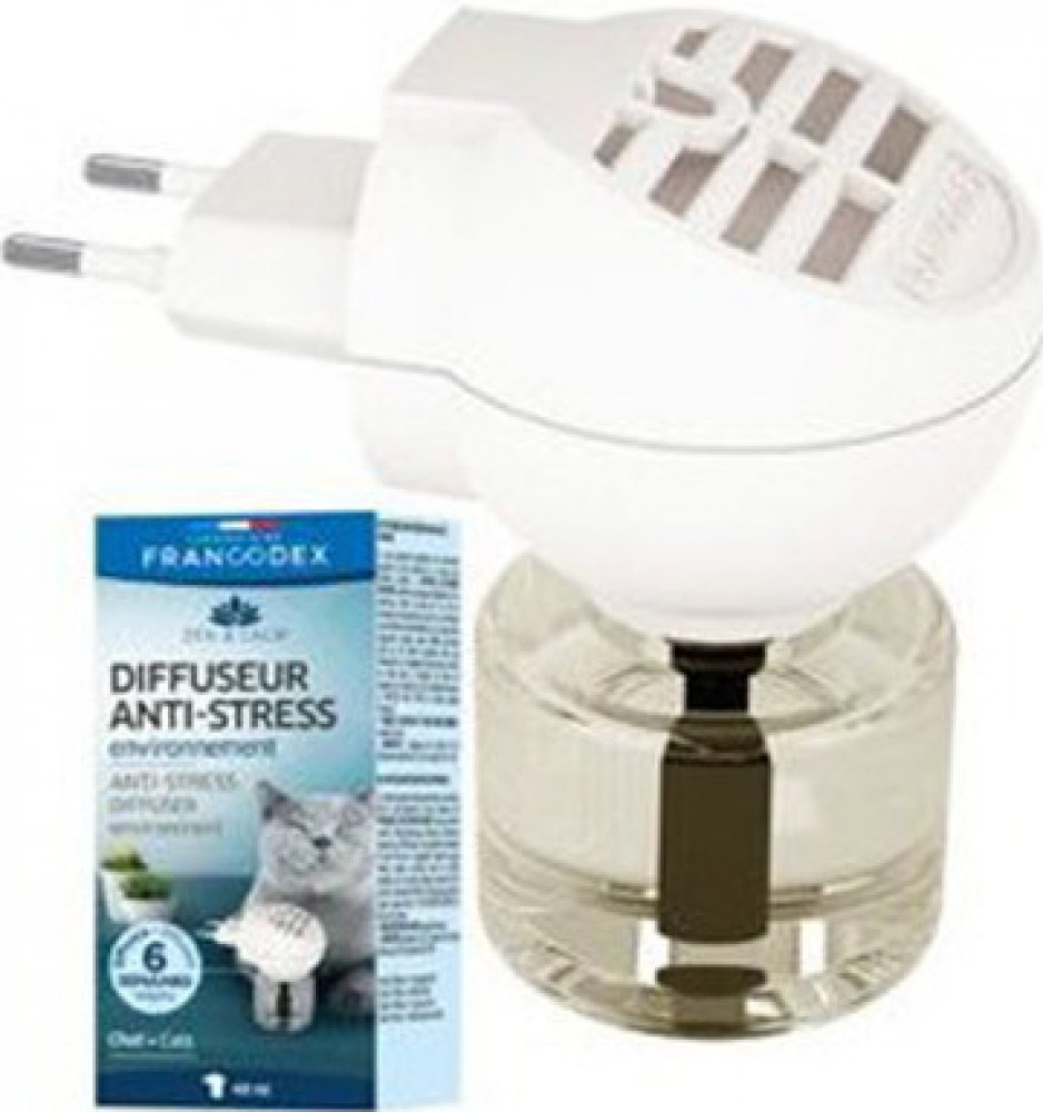 Kočky přirozeně vytvářejí uklidňující feromony, které jim umožňují zklidnění v různých situacích. Francodex Anti-stress difuzér obsahuje syntetickou verzi těchto feromonů, které pomáhají vytvářet prostředí, ve kterém se kočka cítí bezpečně. Doporučujeme použít zvláště v případě nevhodného chování kočky (močové značení, nadměrné škrabání) způsobené stresovými situacemi jako je stěhování, změna pros...
