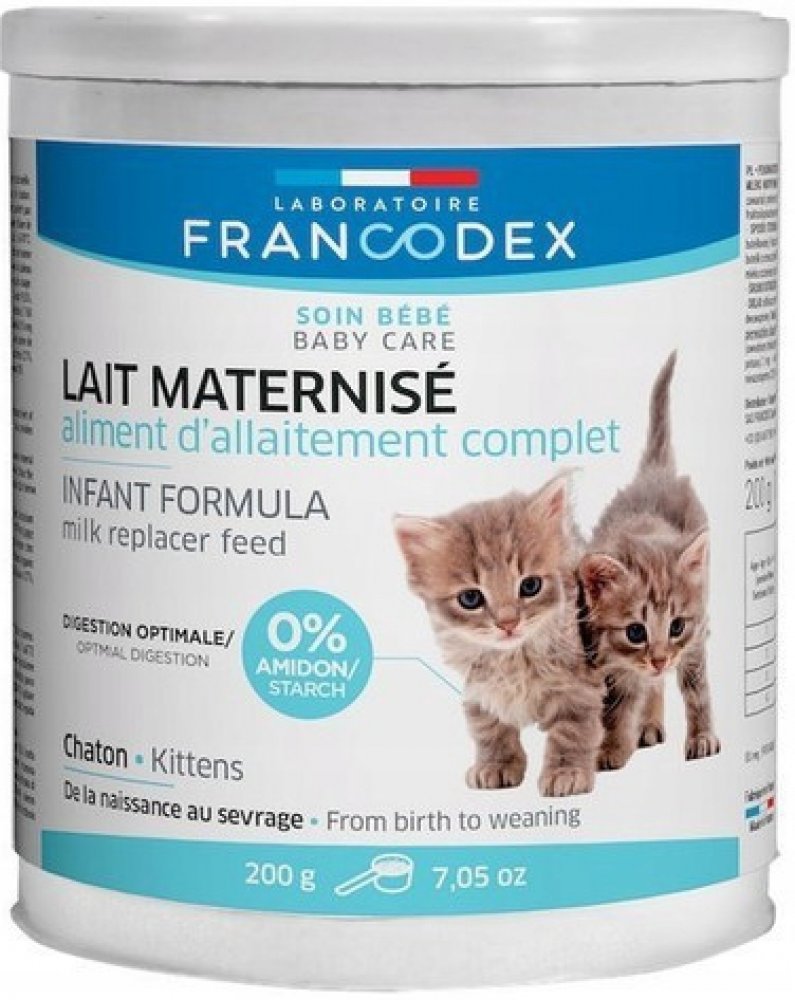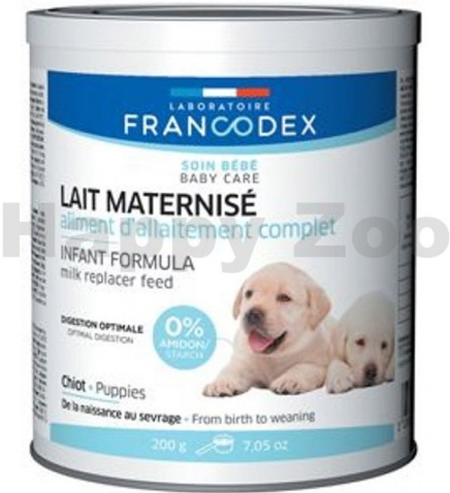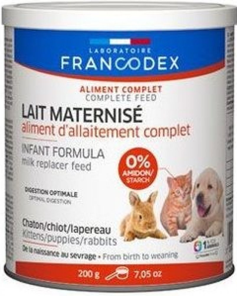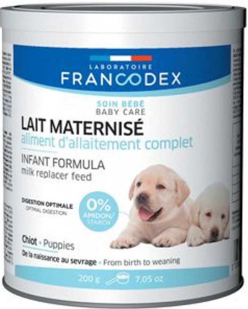 Doplňkové krmivo Francodex nahrazuje mléko. Je určeno k výživě opuštěných štěňat nebo jako doplňkové krmivo koťat k mateřskému mléku. Obsahuje vyvážené množství bílkovin, tuků, vitamínů a minerálů. Podporuje zdravý růst a vývoj štěňat. Mléko obsahuje také fruktooligosacharidy pro podporu střevní flóry. Mléko neobsahuje škrob, čímž celkově zlepšuje trávení štěněte. Dávkujte dle pokynů u dávkovací tabulky.