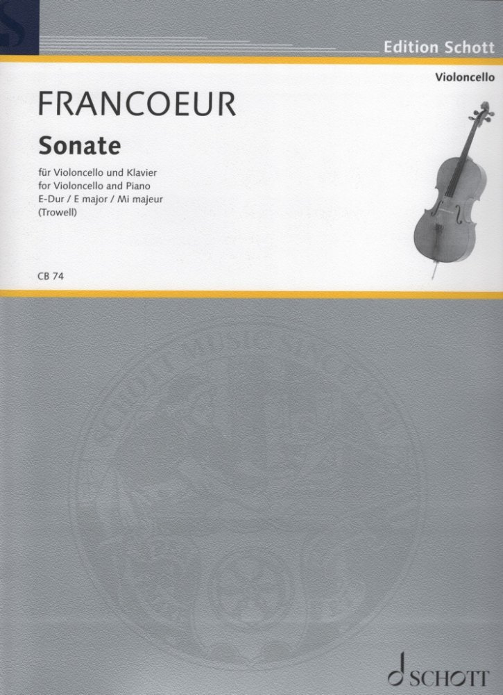 Sonáta E-dur pro violoncello a klavír, kterou napsal francouzský hudební skladatel Francois Francoeur. Sešit obsahuje klavírní doprovod plus samostatně vložený part pro violoncello.