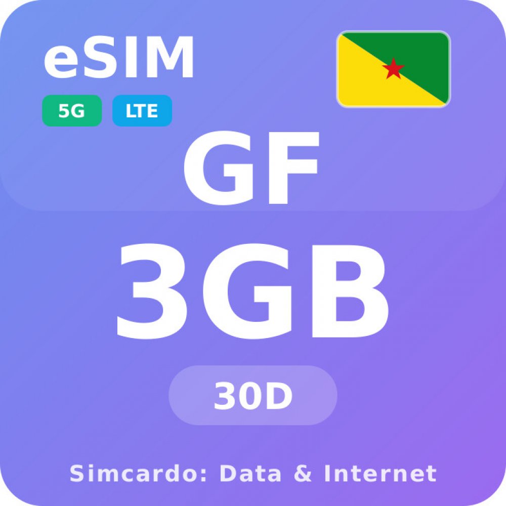 Francouzská Guyana Mobilní Internet - eSIM 3GB 30 dní datová SIM karta