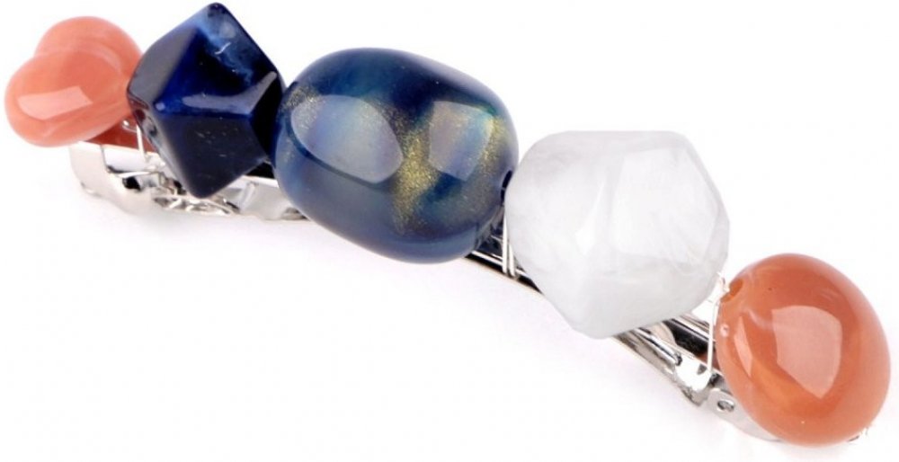 Francouzská spona zdobená akrylátovými kameny, které jsou inspirovány pravými minerály, poutavě ozdobí váš účes.