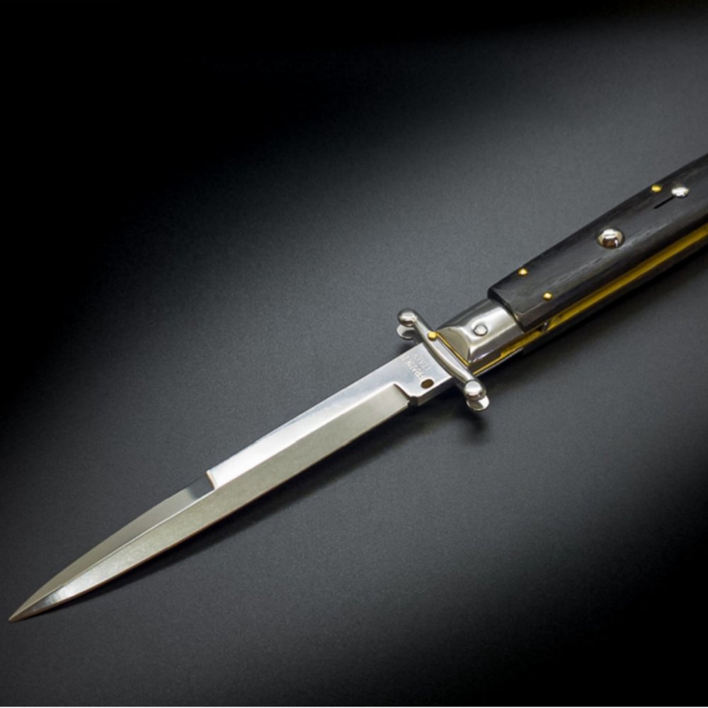 Jedinečné tradiční stiletto inspirováno původním modelem Frank Beltrame Italy switchblades. Zde výrobce eliminoval a zlepšoval určité výrobní nedostatky, což z něj udělalo spolehlivý a přesný nůž, pokud jde o uvolnění a robustnost čepele v otevřené poloze. Převlečná záštita je k čepeli připevněna malým nýtem, vložky vyrobeny z mosazi a čepel z nerezové oceli AISI 420 MA5M o tvrdosti 56 HRC.