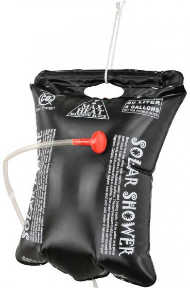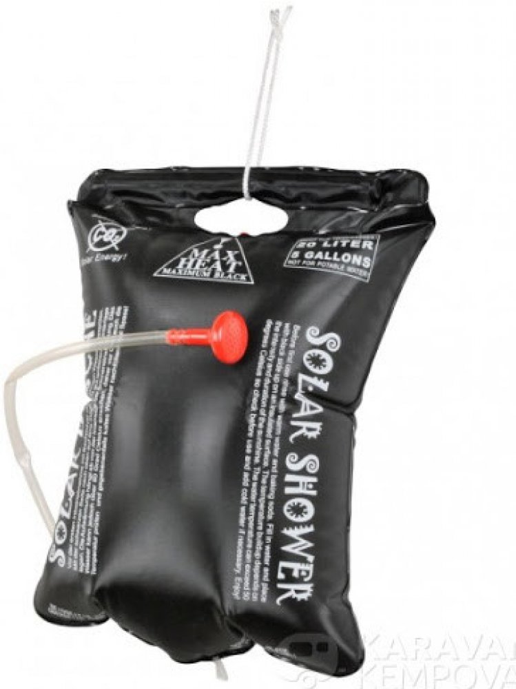 Díky ekologické solární energii získáte teplou vodu zdarma. Voda v 20litrovém vaku se ohřeje až na 40 °C. Nově vyvinutá verze je černá s matným zadním povrchem, což zajišťuje velmi rychlé zahřívání a zabraňuje růstu řas, protože světlo neproniká. Možnost použití horizontálně nebo zavěšeně. Dva ventily – jeden pro bezpečnou přepravu na vaku, druhý na sprchové hlavici pro pohodlné ovládání. Bez ftal...